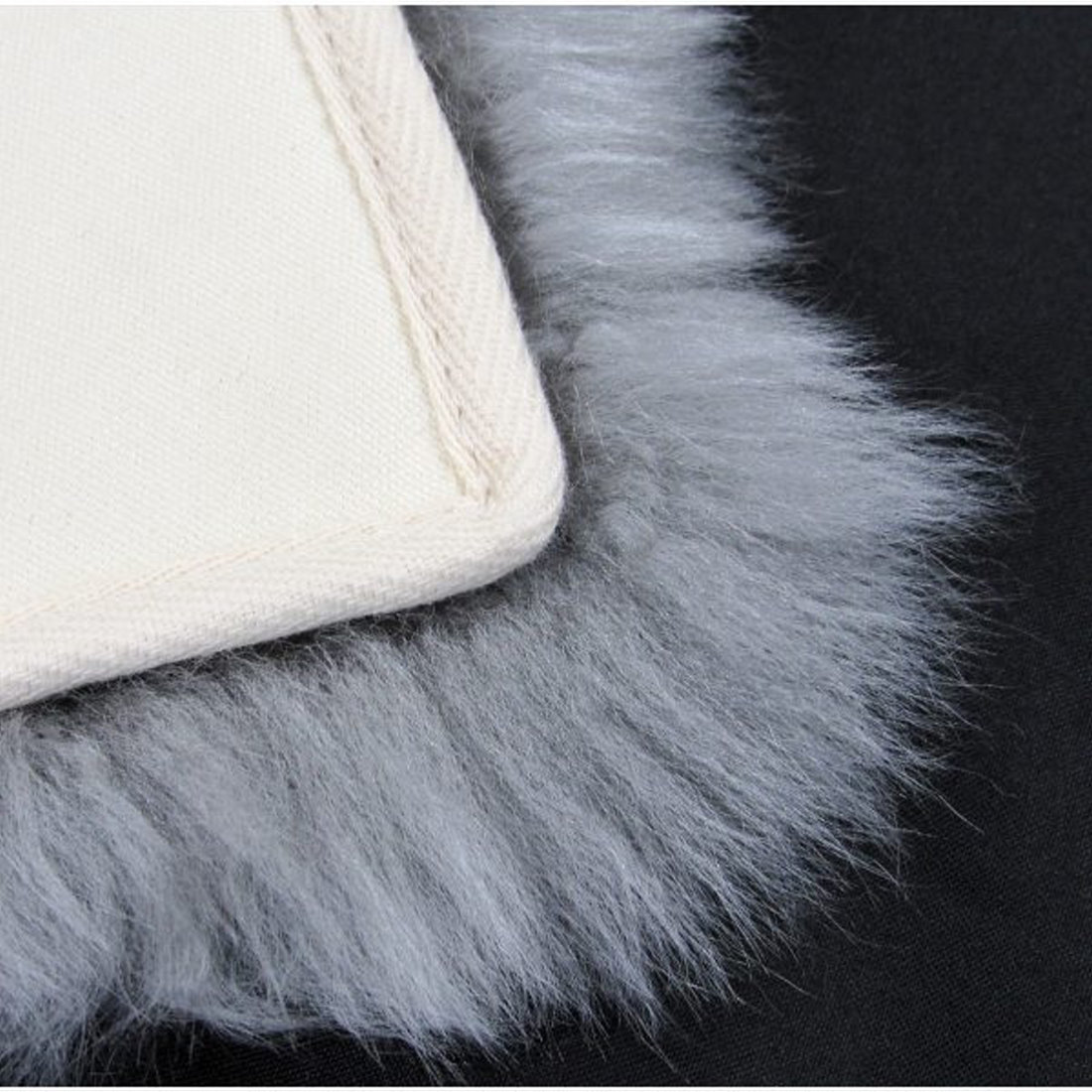 Die Vorderseite besteht aus echtem Lammfell mit ca. 60 mm Haarlänge, die Rückseite aus 100 % Baumwolle.
