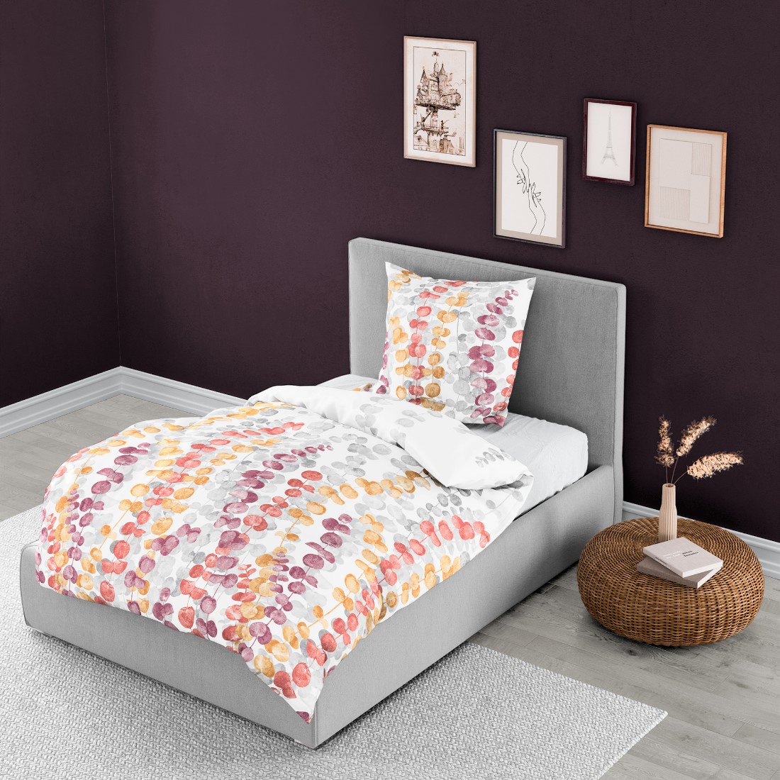 Deckenbezug 1x155x220 cm + Kissenbezug 1x 80x80 cm - Farben: rot oder pastel