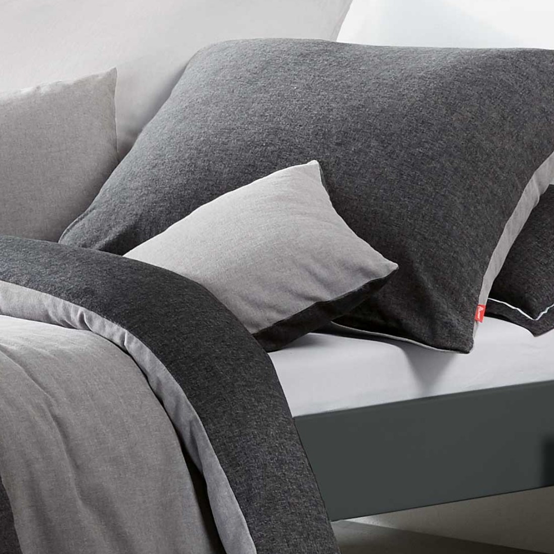 Wenn es nicht ganz unifarben sein soll, liegen Sie mit diesem dezent gewebten Fischgrätmuster genau richtig. Für eine schöne Abwechslung um stilsicher zu nächtigen sorgt die kontrastierende Wendeseite.