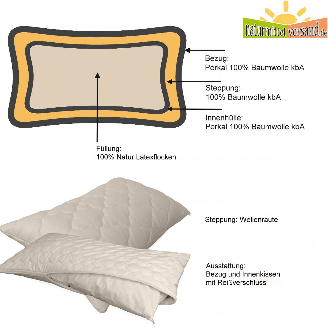 Veganes Latexkissen EASY mit Natur Latex Flocken und Baumwolle Steppung