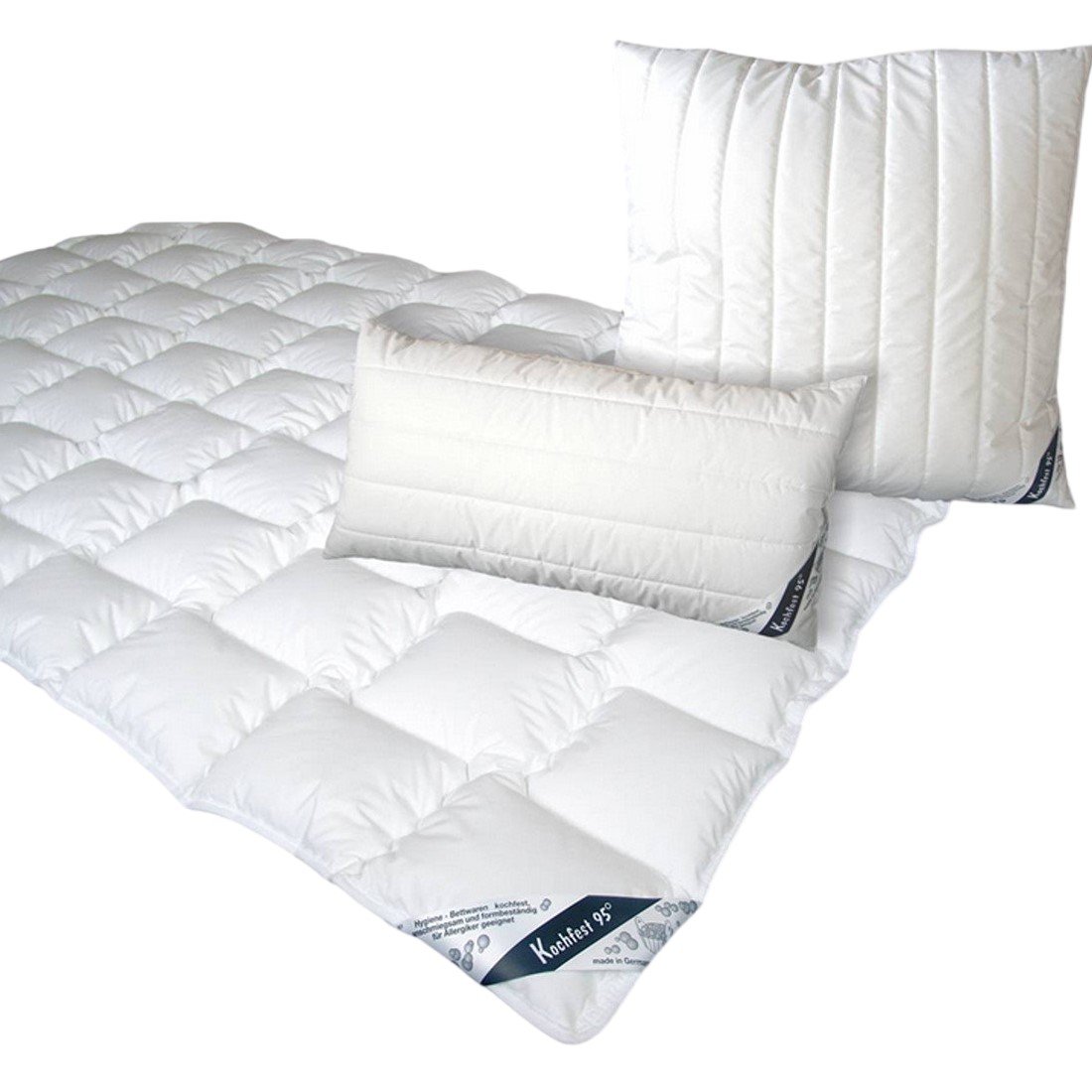 waschen wollen. Nicht umsonst werden OBJEKTA Bettdecken auch in der Hotellerie und in öffentlichen Einrichtungen eingesetzt. Der Bezug besteht aus pflegeleichtem Baumwollmischgewebe 50% Baumwolle, 50% Polyester. Die Füllung aus 100% koch- und tumblerfestem Spezialpolyester. Die kochfeste Bettdecke ist mit einer besonders formstabilen Steppung versehen.
