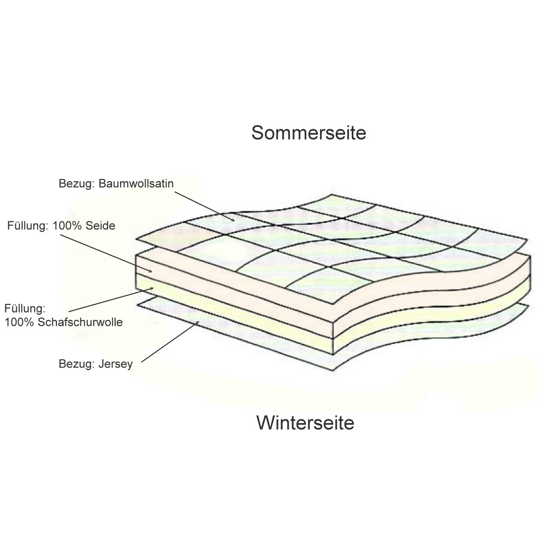 - Füllung Winterseite: 100% Schurwolle