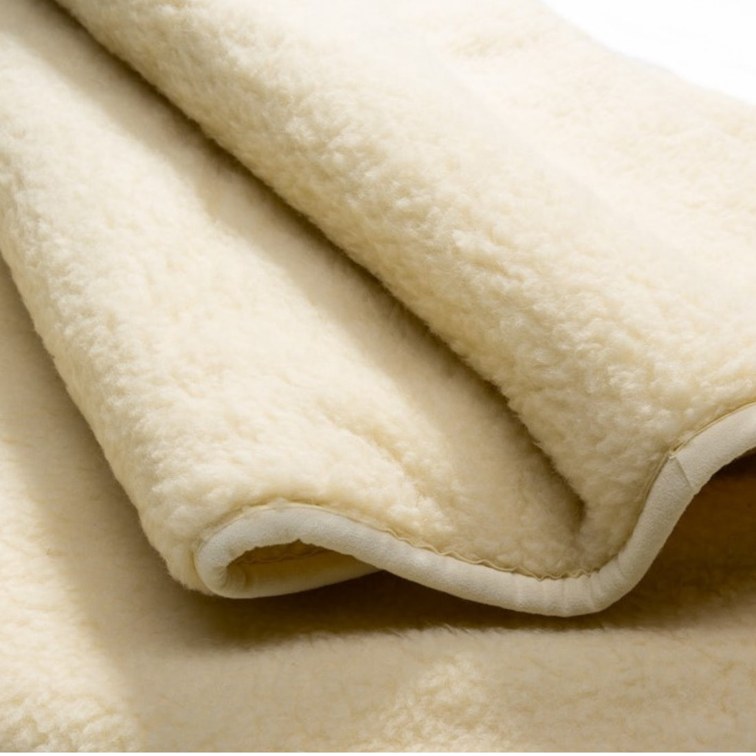Das Merino Unterbett Locke hat ein etwas längeres Flor. Durch ein besonders Verfahren ist die Schurwolle dieser Decke im Flor lockiger und hat den typischen Schäfchencharakter. Dadurch ist das Merino Unterbett Locke Locke noch etwas kuscheliger und anschmiegsamer. Die Vorwärmzeit beim Zubettgehen in der kalten Jahreszeit entfällt.