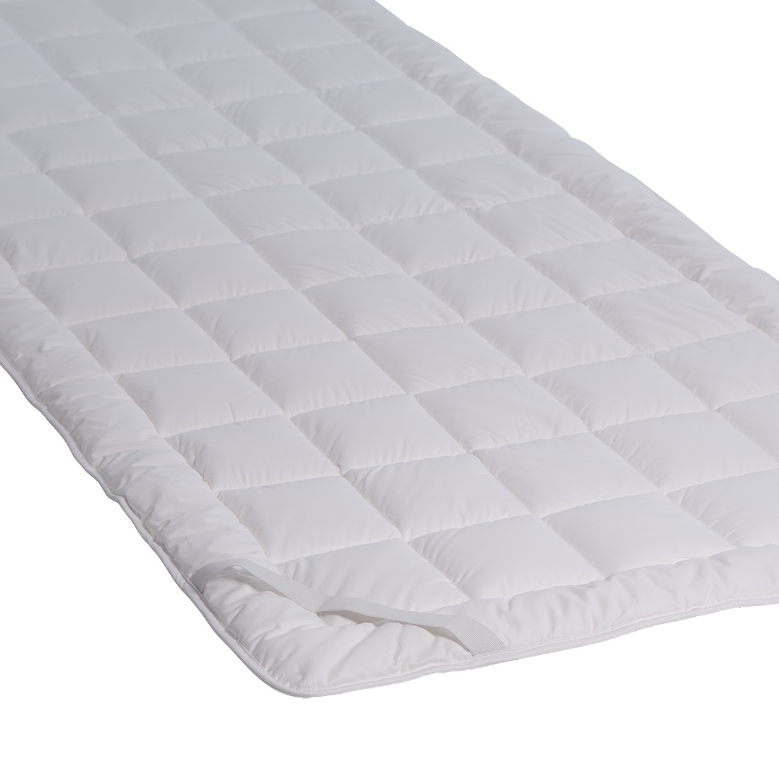 Um ein Verrutschen der Innenfüllung zu vermeiden ist der feine Baumwoll Bezug in Karos gesteppt. Mittels praktischer Eckgummibänder an den Ecken kann das Unterbett schnell auf der Matratze fixiert werden.