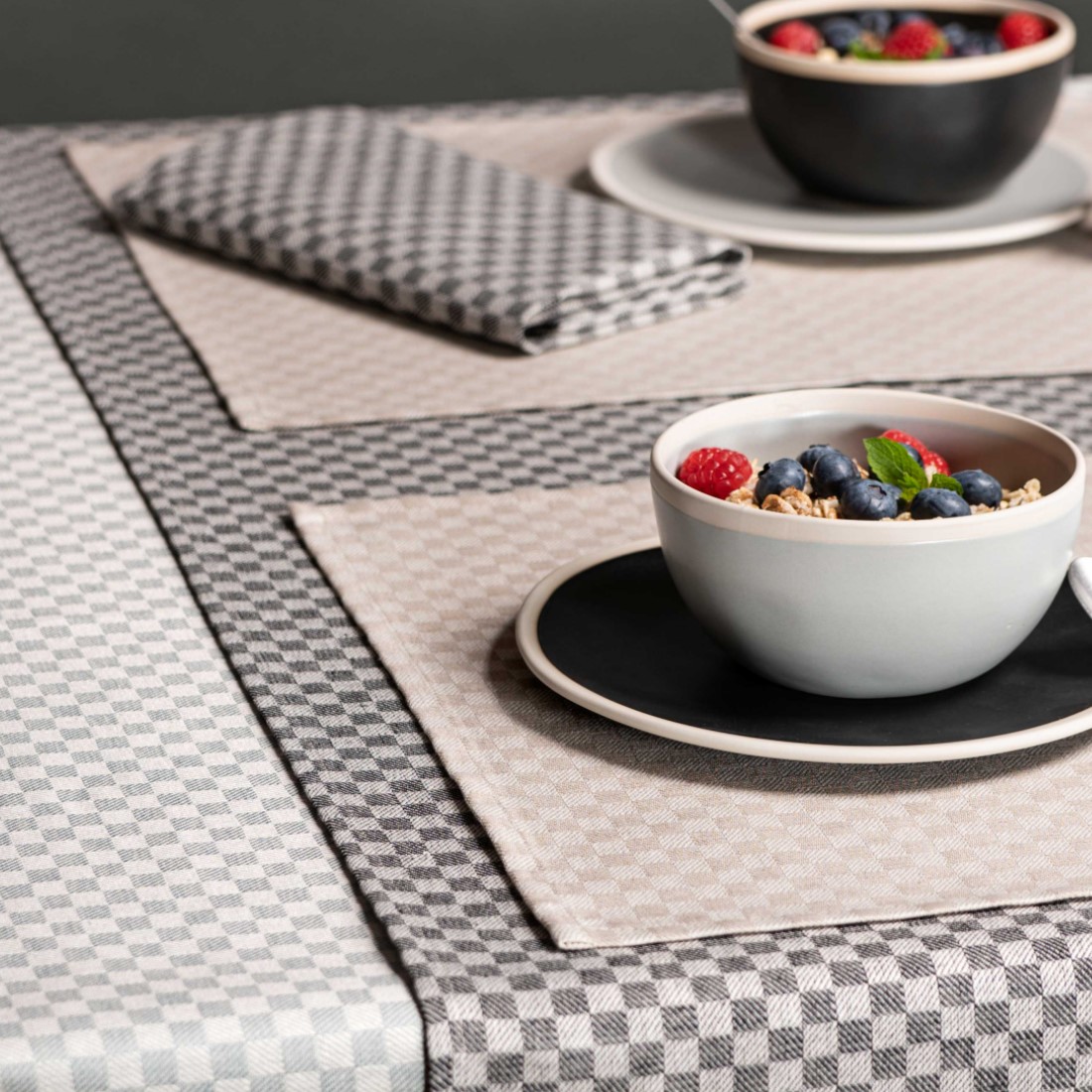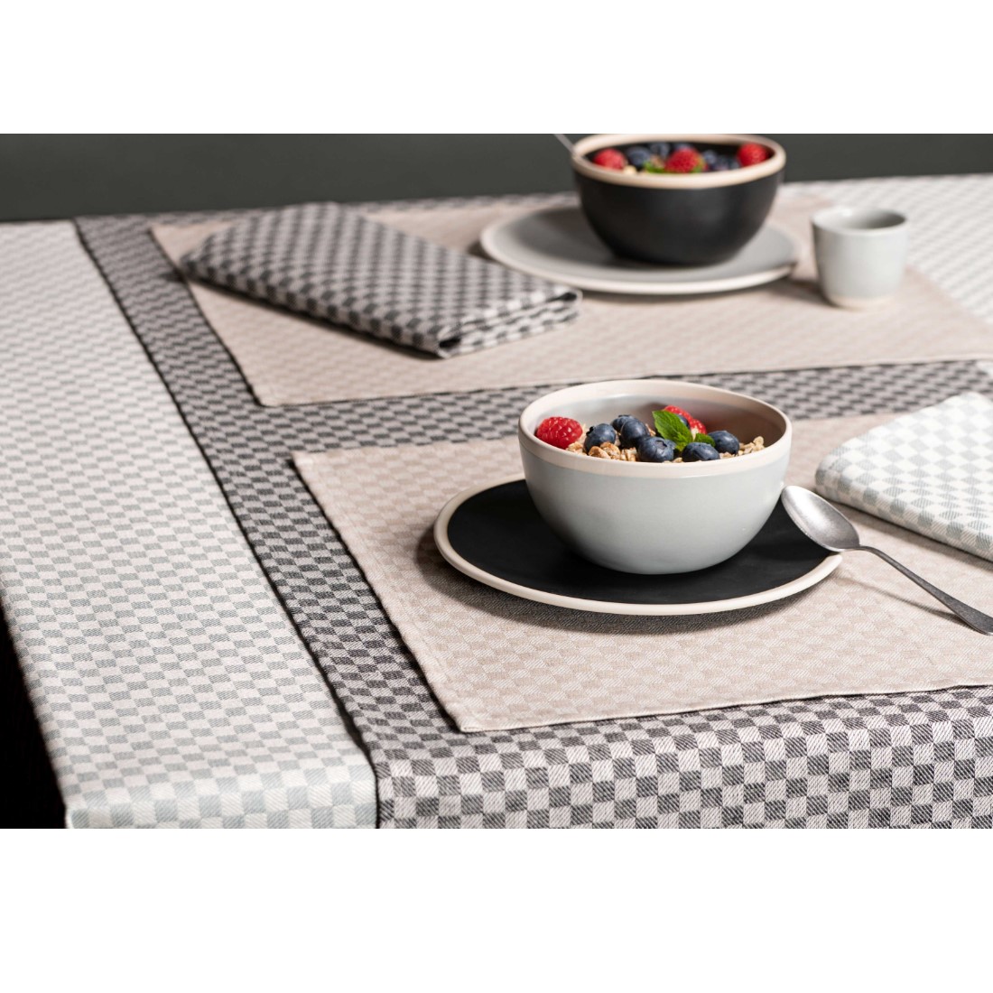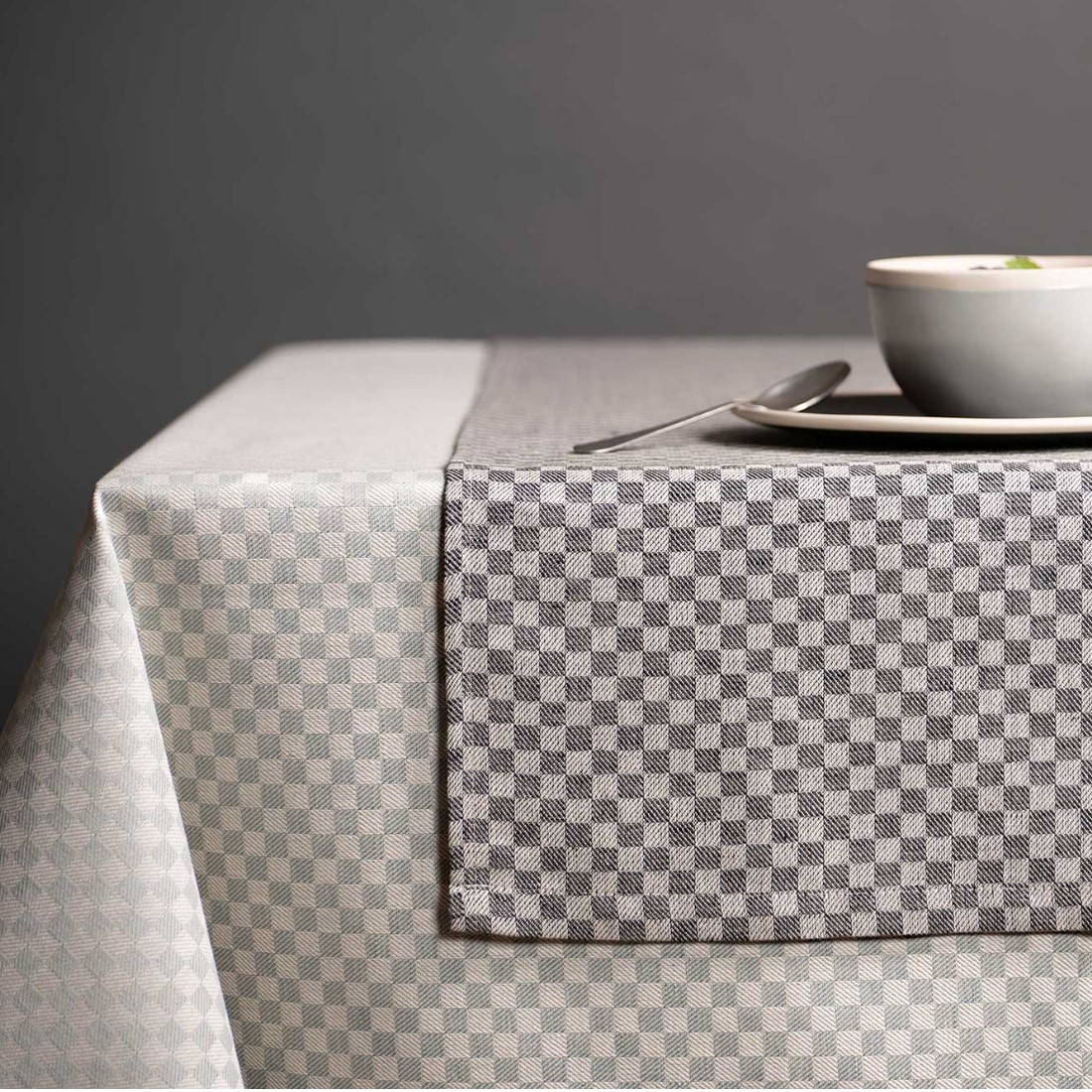 Nachdem die Tischdecke in der Schachbrett Kollektion von Erika Vaitkute sofort zum Bestseller wurde, wurde passend dazu eine vollständige Tischwäsche und Küchentextil Kollektion kreiert. Der Halbleinen Tischläufer Schachbrett passt hervorragend zu der Tischdecke und der gesamten Schachbrett Kollektion. Die verschiedenen Farben aus der Kollektion können aber auch wunderbar kombiniert werden und so eine schöne Abwechslung auf Ihren Tisch zaubern. Der Halbleinen Tischläufer Schachbrett sowie die komplette Kollektion besticht mit dem feinen Glanz des Jacquard Gewebes und setzt einen besonderen Akzent auf dem Tisch.