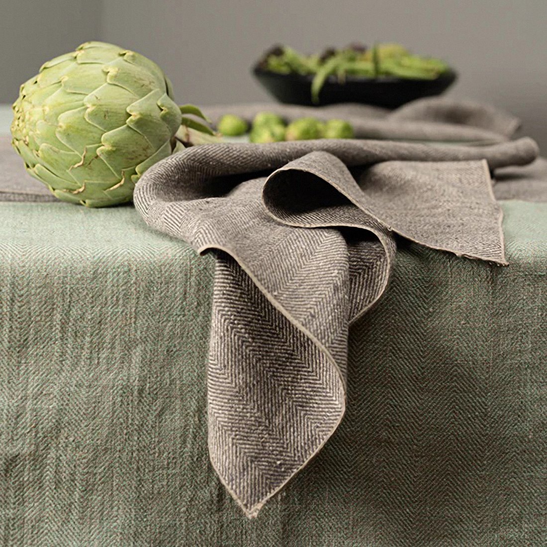 Meisterliche Handwerkskunst und moderne Herstellungsverfahren sind auch die Basis für den Leinen Tischläufer AUDRA von Erika Vaitkute. Mit dem klassischen Fischgrat Design und der feinen Umkettelung glänzt auch dieses Produkt aus der Kollektion AUDRA durch seine lässige Ausstrahlung. Der Tischläufer AUDRA besteht aus Reinleinen mit ca. 300 g/m² und ist wie die gesamte Kollektion vorgewaschen und daher herrlich weich und anschmiegsam. Neben dem Leinen Tischläufer AUDRA umfasst die Kollektion auch eine Tischdecke, ein Tischset, Servietten und Geschirrtücher. Die Farben der AUDRA Serie sind untereinander kombinierbar und ermöglichen eine individuelle Gestaltung für Ihren Esstisch.