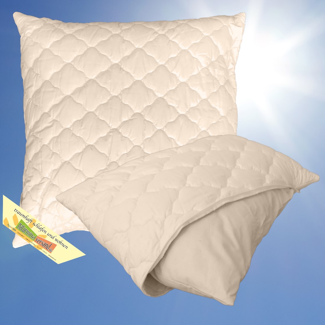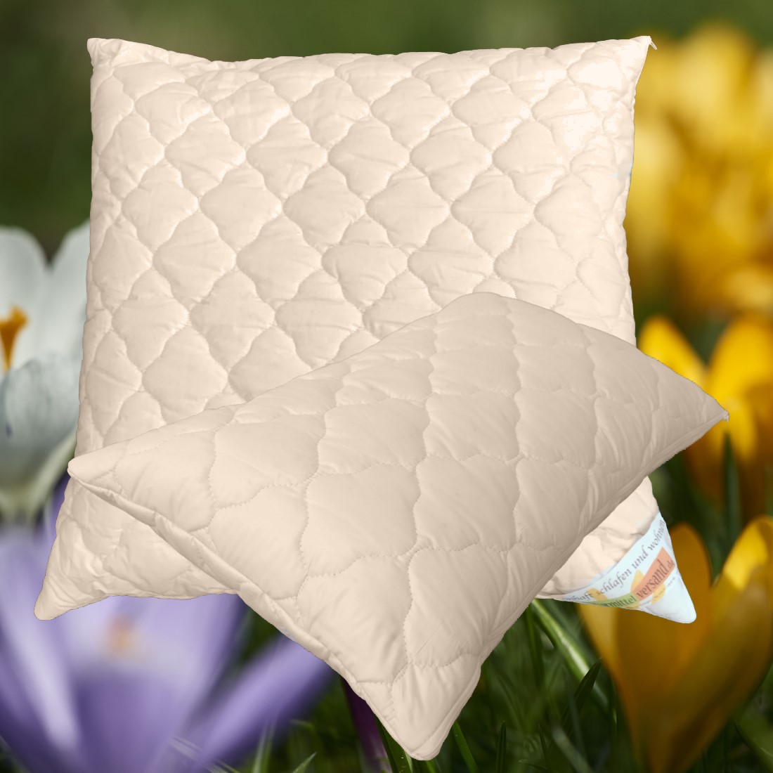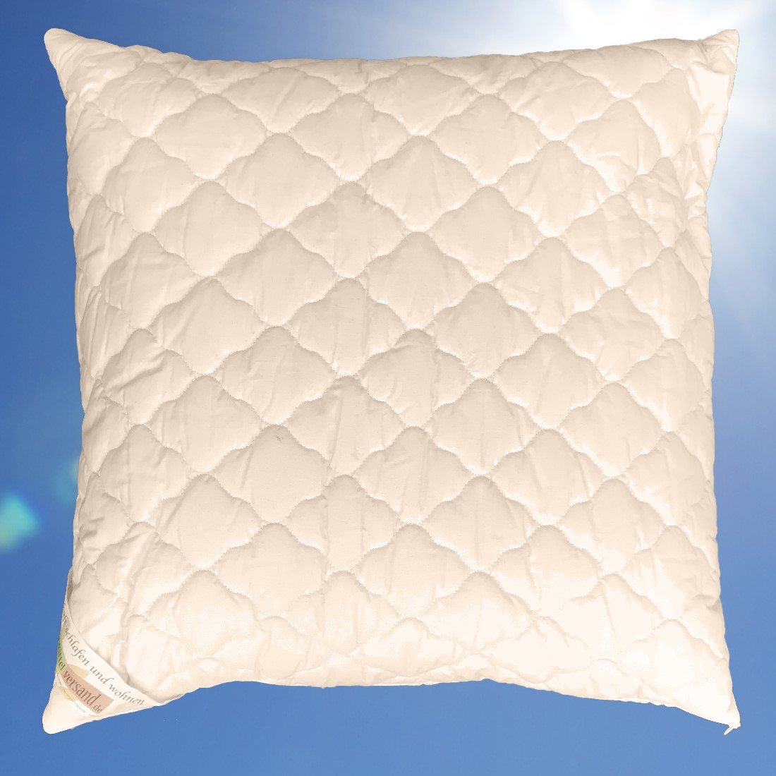 Der Bezug und die Steppung sind mit Schonwäsche bis 30° C waschbar. Die Füllung bitte nicht waschen. Das Kopfkissen regelmäßig an einem Schattenplatz lüften.