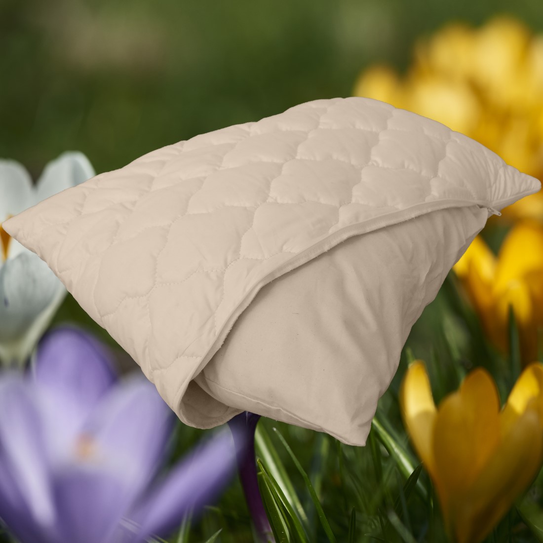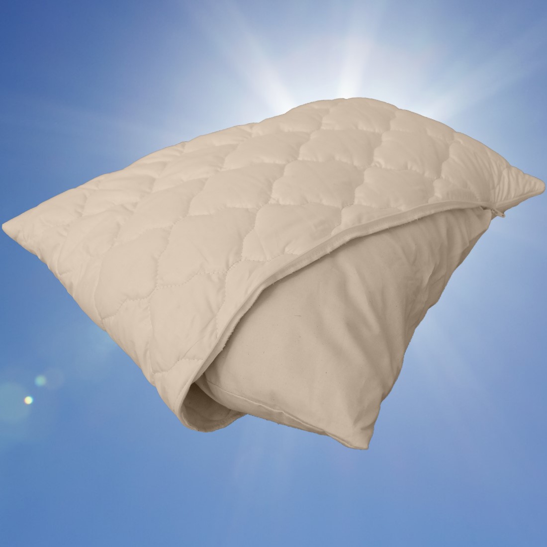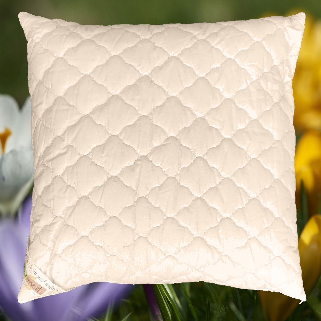 Der Bezug und die Steppung sind mit Schonwäsche bis 30° C waschbar. Die Füllung bitte nicht waschen. Das Kopfkissen regelmäßig an einem Schattenplatz lüften.