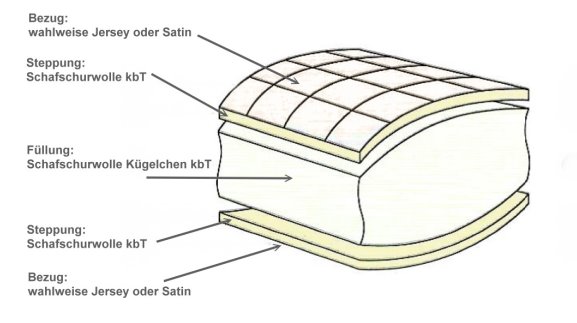 - Beschaffenheit der Steppung: Schurwolle-Vlies