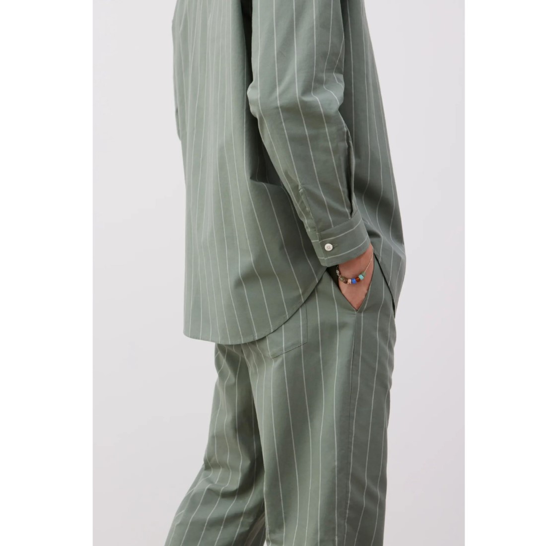 Die drei Farbvarianten – fichtengrün/undyed, undyed/sky und sky/dunkelgrün – harmonieren untereinander und ergänzen die passenden Oberteile der Kollektion. Ob als Homewear, Pyjamahose oder Reisebegleiter: Yoko wirkt immer natürlich und unaufdringlich.