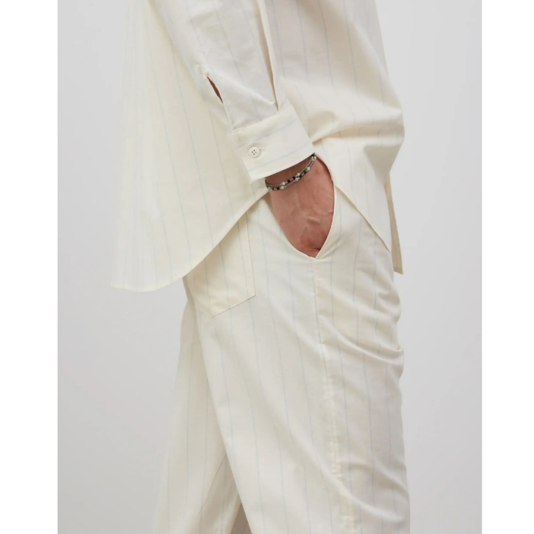 GOTS‑zertifiziert und nach OEKO‑TEX® STANDARD 100 geprüft, steht die Hose für verantwortungsvolle Materialien und langlebige Qualität. Auch als kurze Variante erhältlich: die John striped shorts.