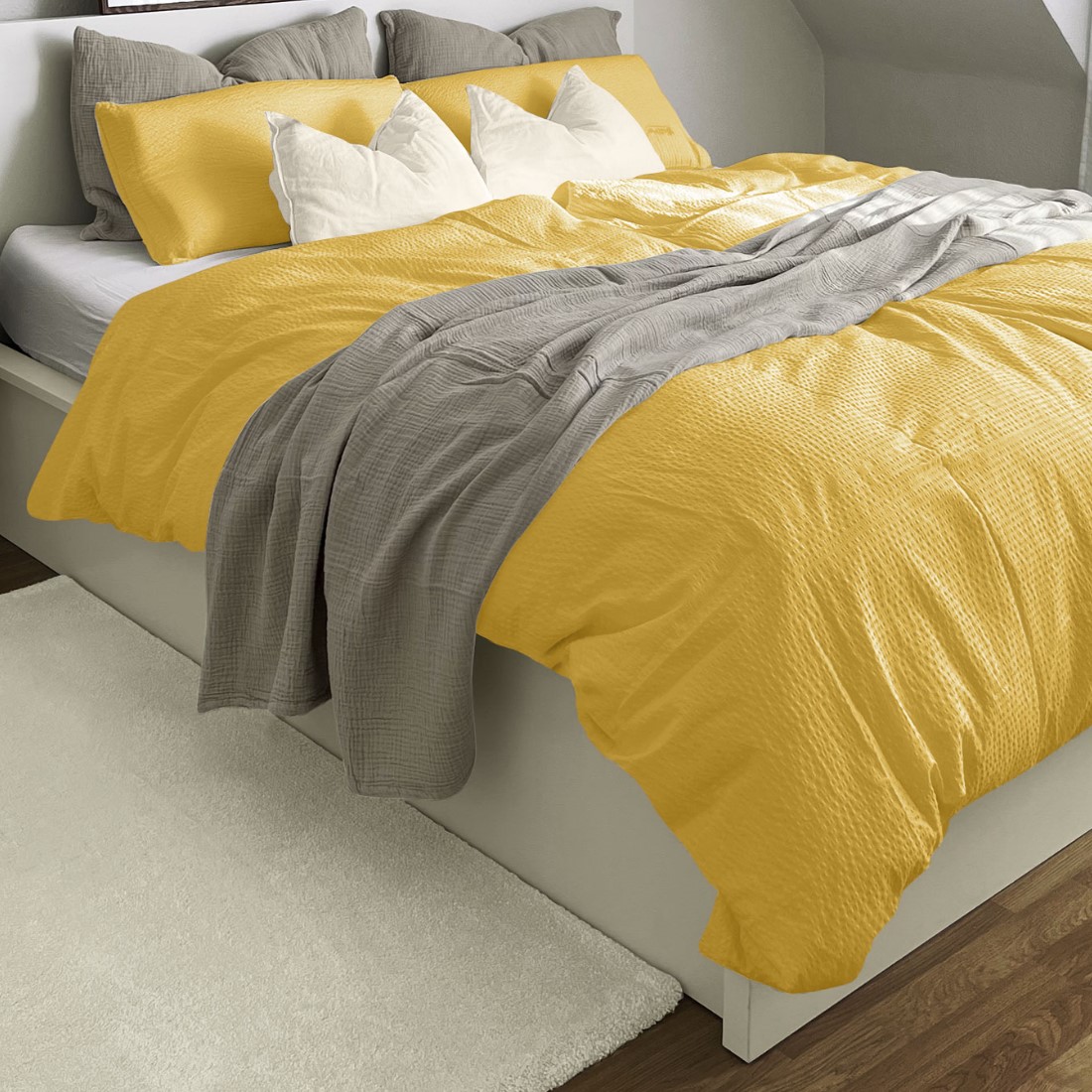 Setzen Sie in Ihrem Schlafzimmer ein optisches Highlight mit einer zeitlos schönen Seersucker Bettwäsche.