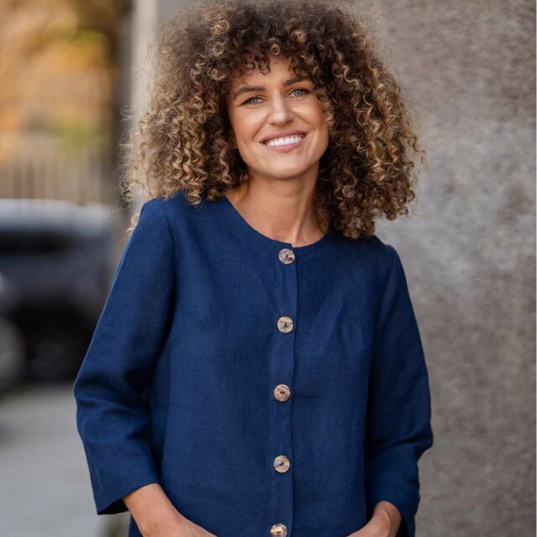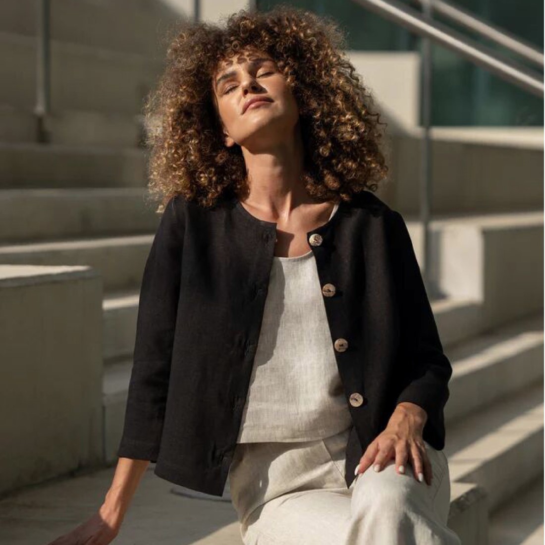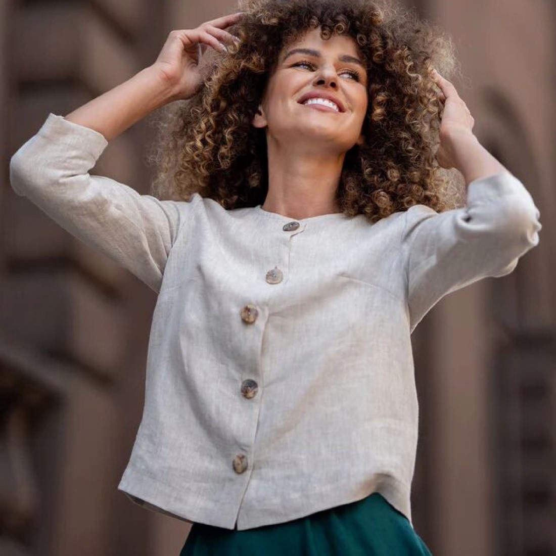 Produktinformationen "Leinen-Cardigan - Blazerjacke mit Knöpfen"