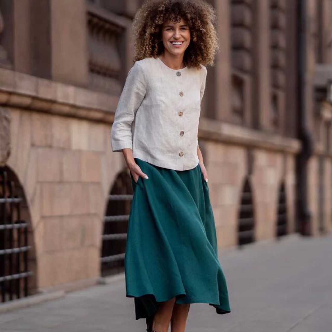 Der Cardigan fällt größengetreu aus und bietet eine natürliche, leicht figurumspielende Passform. Die 3/4‑Ärmel und die kurze Länge setzen Oberteile und Kleider harmonisch in Szene. Wie bei allen hochwertigen Leinenstücken wird das Material im Laufe des Tages weicher und geschmeidiger, wodurch der Tragekomfort weiter zunimmt. Geeignet für verschiedene Körperformen wie Sanduhr, Apfel, Rechteck und umgekehrtes Dreieck.