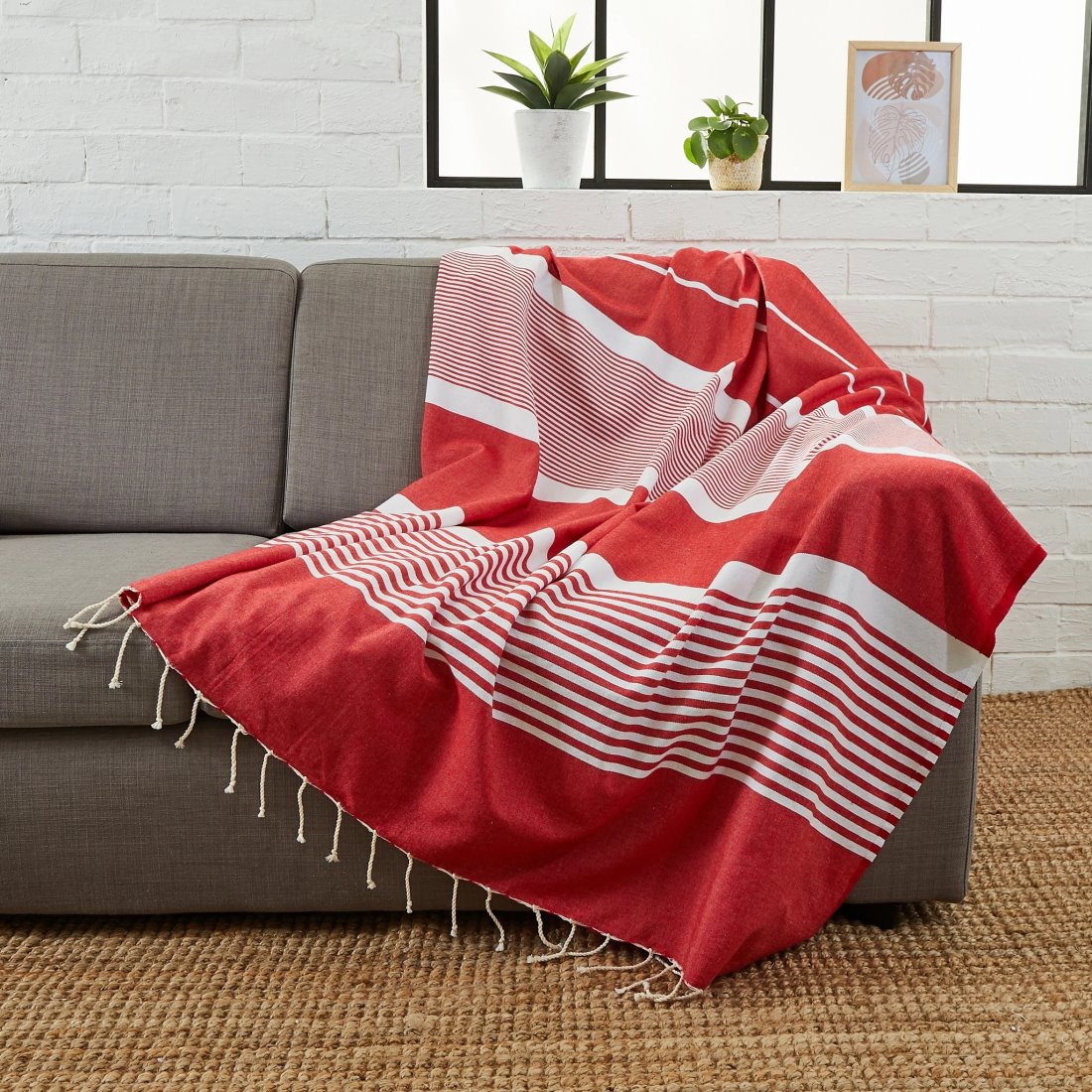 - Design: gewebtes Sommertuch mit handgeknüpften Fransen