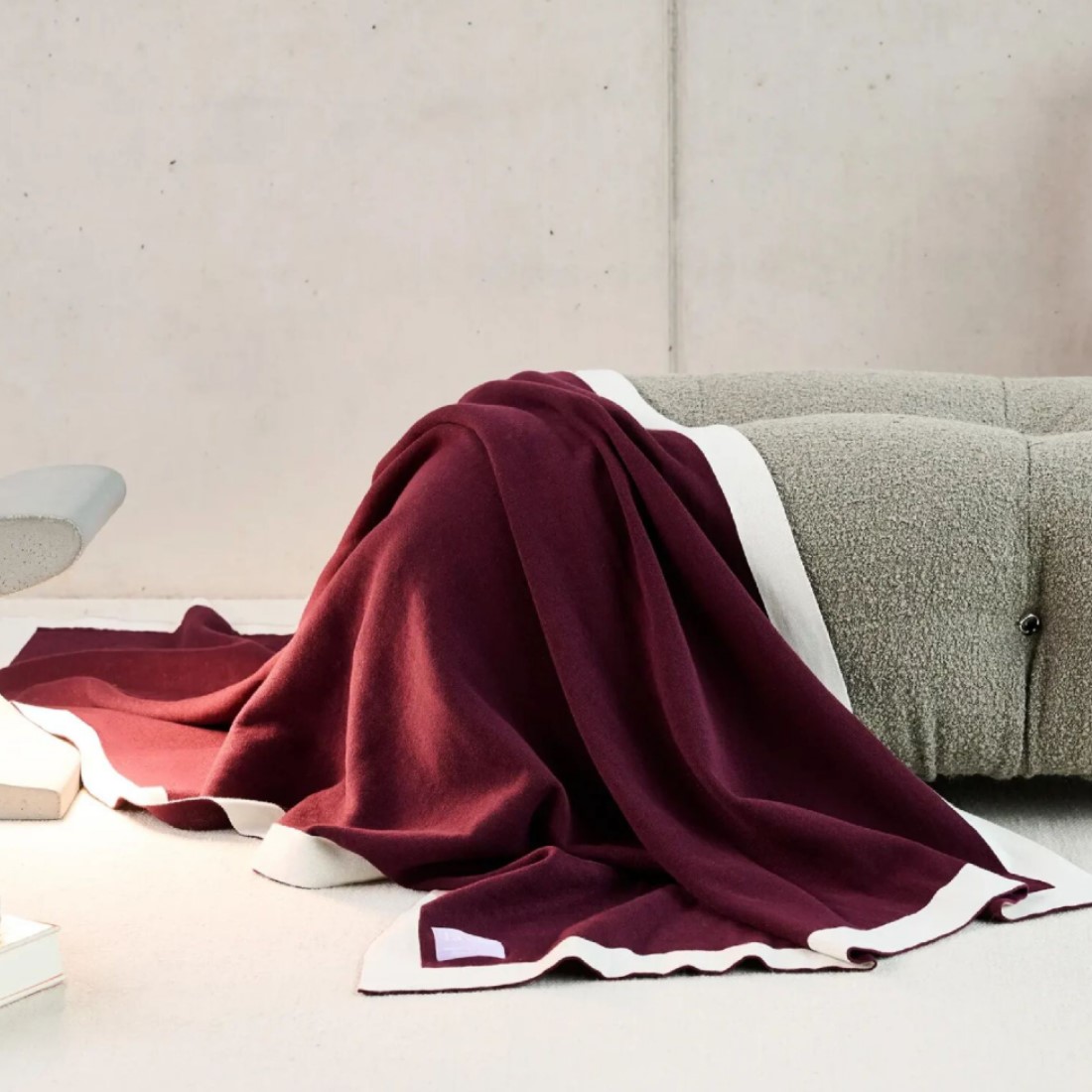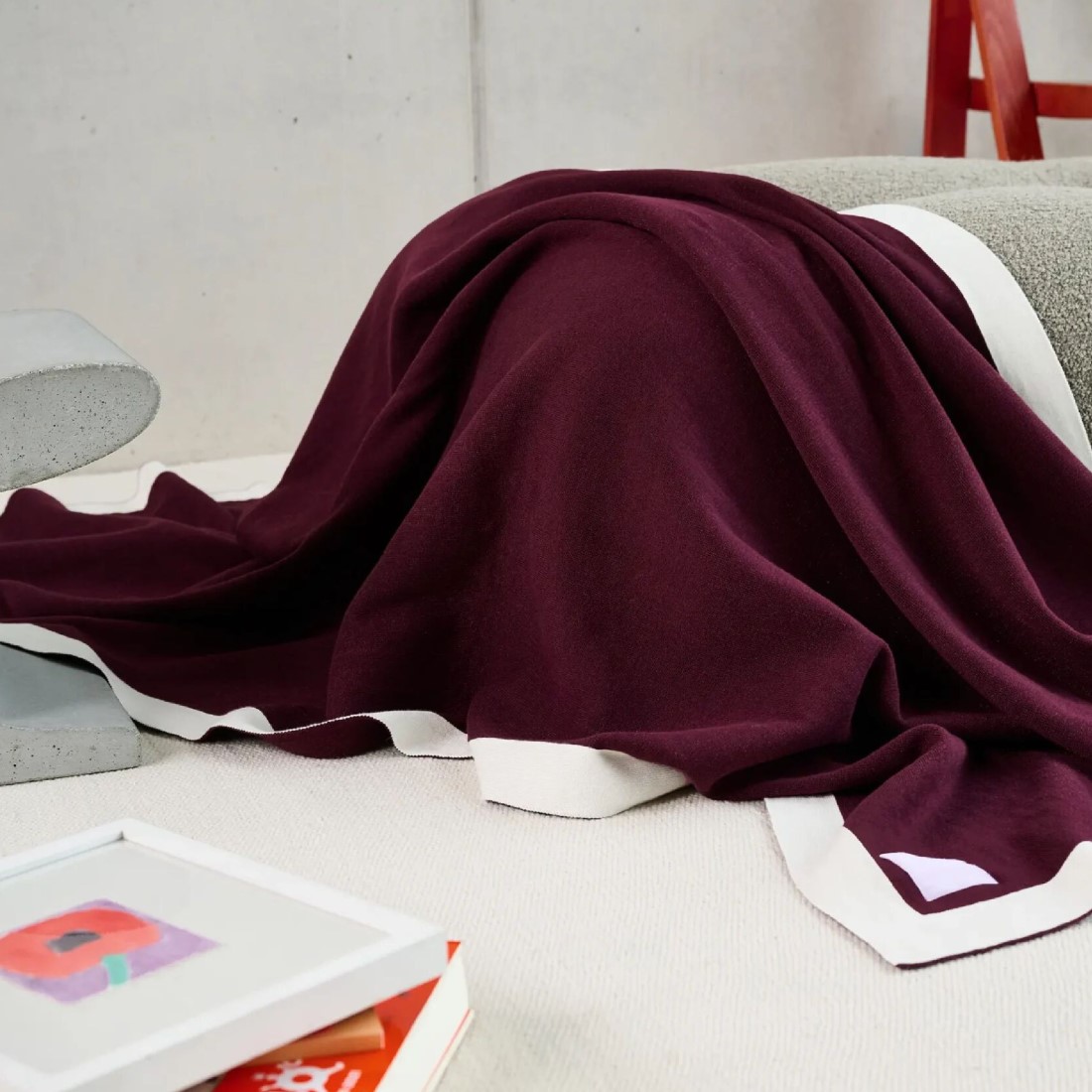 Ist das Plaid beidseitig nutzbar? Ja. Vorder‑ und Rückseite spiegeln sich farblich und können je nach Stimmung gewendet werden.