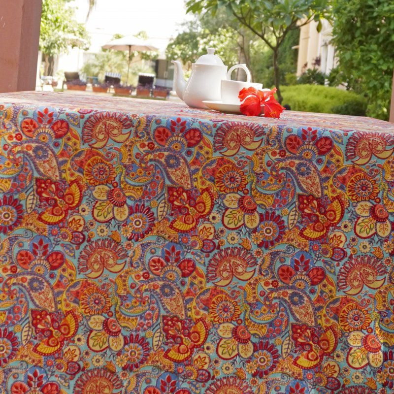 Tischdecke Indigo mit Blockprint Paisley Muster