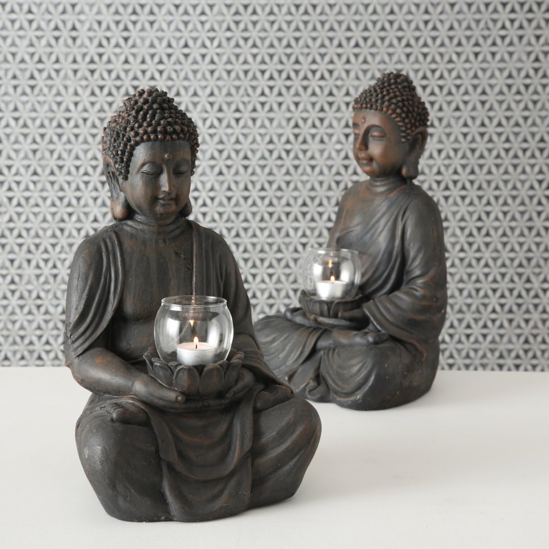 - Lieferumfang: 2 Stück verschiedene Windlicht Buddha