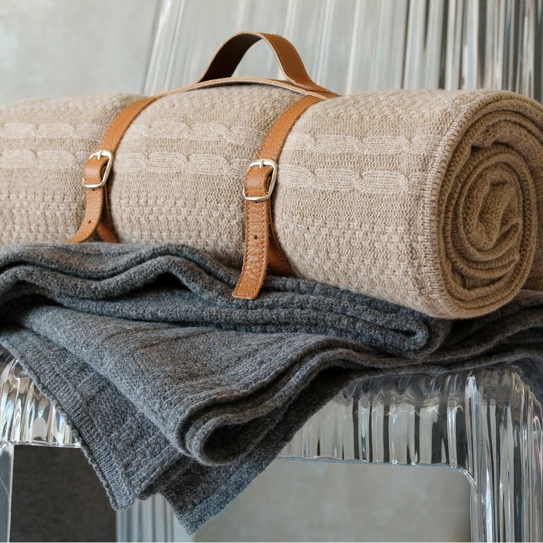 Einfach Ihre Lieblingsdecke einrollen und mit dem Tragegurt fixieren platzsparend dabei haben.