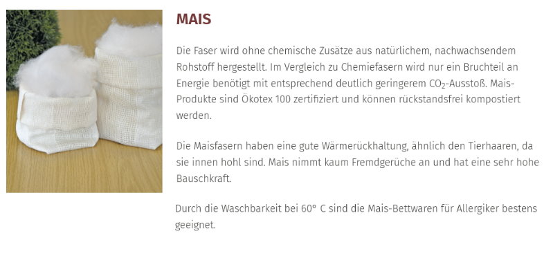Das sagt Elza über Mais und Elza Maisfaser Bettdecken