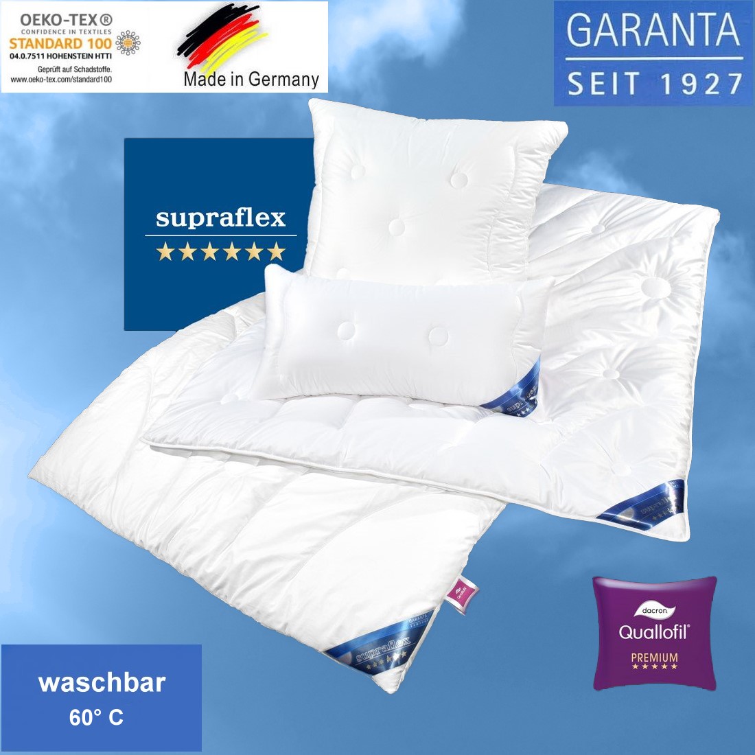 - Genaue Bezeichnung der Füllung: 100% Markenfaser Advansa® Quallofil Premium