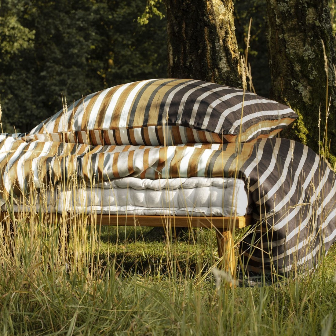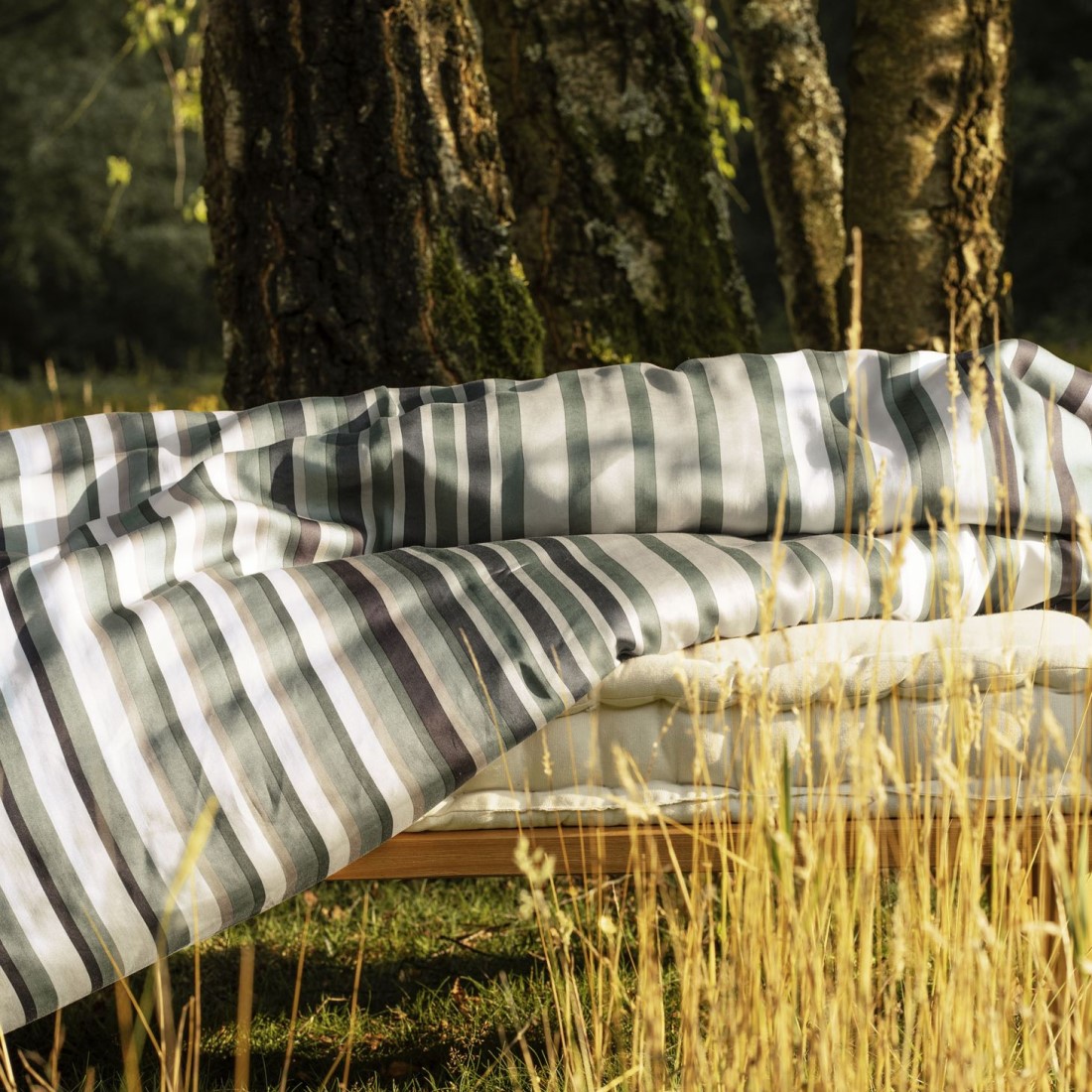 Das hochwertige Set wird mit einem verdeckten Reißverschluss verarbeitet und trägt eine dezente Logofahne am Kissen. Pflegeleicht, langlebig und formschön – ein Design „Made in Germany“, das hält, was es verspricht.