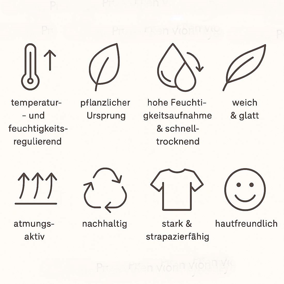 Temperaturausgleichend Die Faser reagiert aktiv auf Körperwärme – kühlend im Sommer, wärmend im Winter. Ideal für alle Jahreszeiten.
