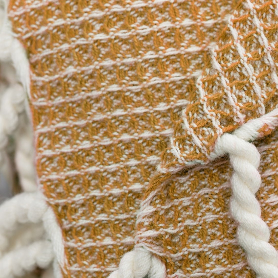 • Design: Waffelstruktur mit Fransen