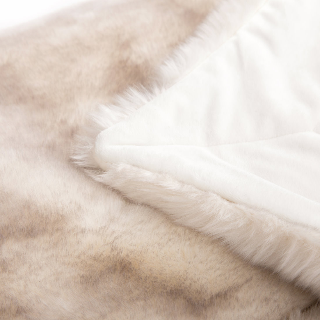 Täuschend ähnlich, und Dank Hightech Herstellungsverfahren ist diese herrlich flauschige Webpelzdecke in Polarfuchs Optik von echtem Tierfell kaum zu unterscheiden.