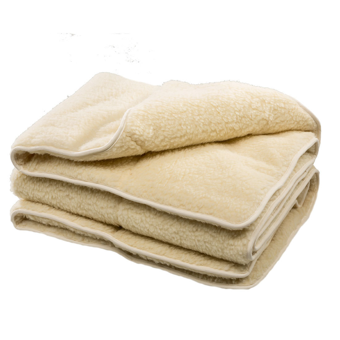 Mit Steppung, beidseitig Lammflor kbT auf Baumwollkette kbA, Füllung Schafwolle kbT, mit Einfassband aus 100% Baumwolle - Konfektion ohne Füllung: