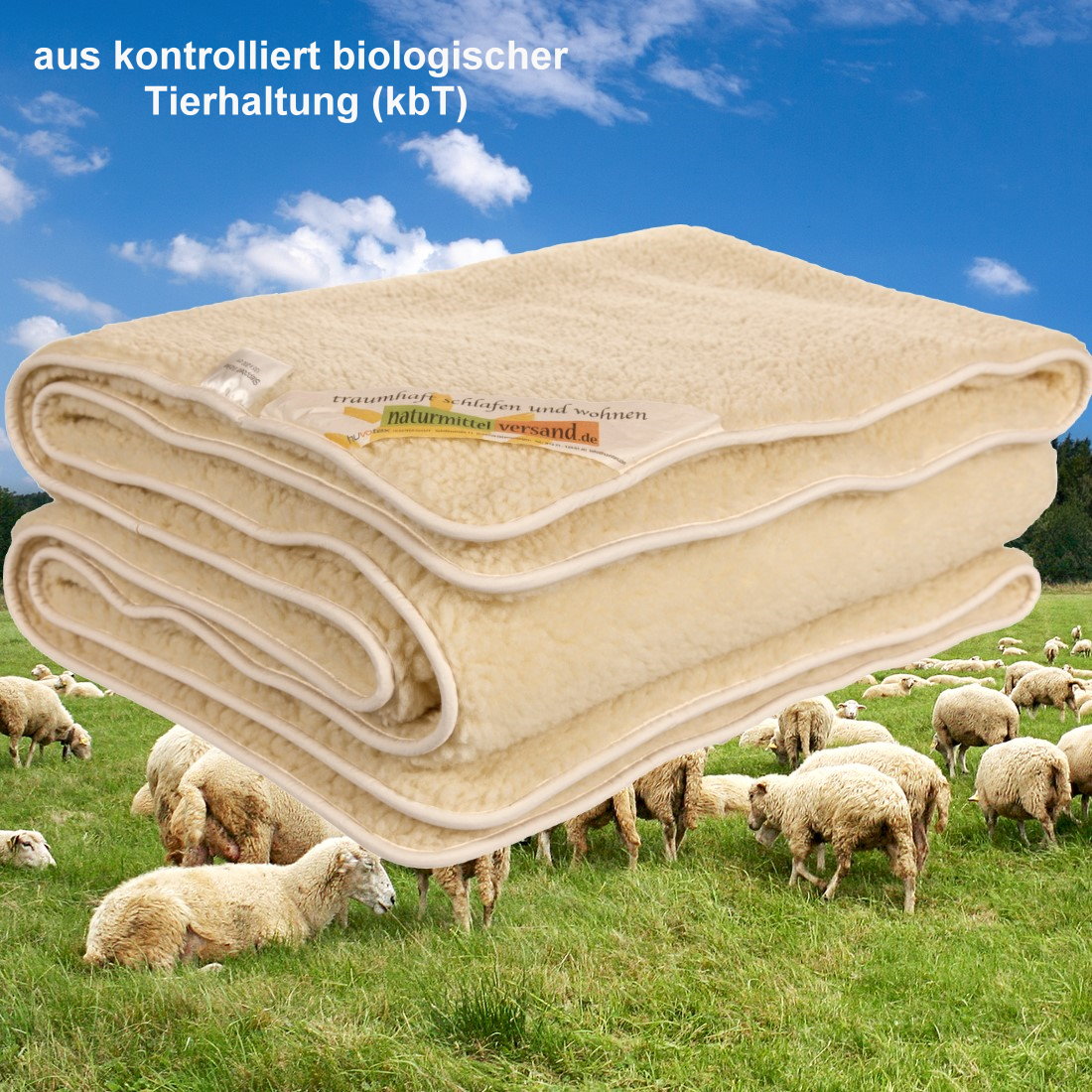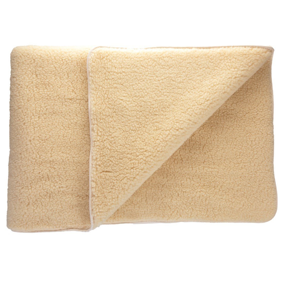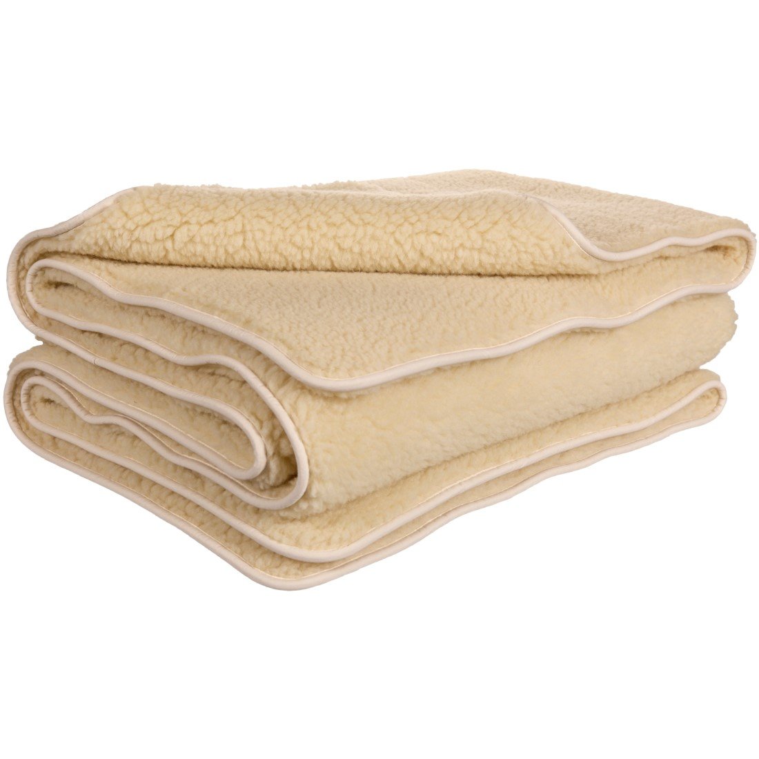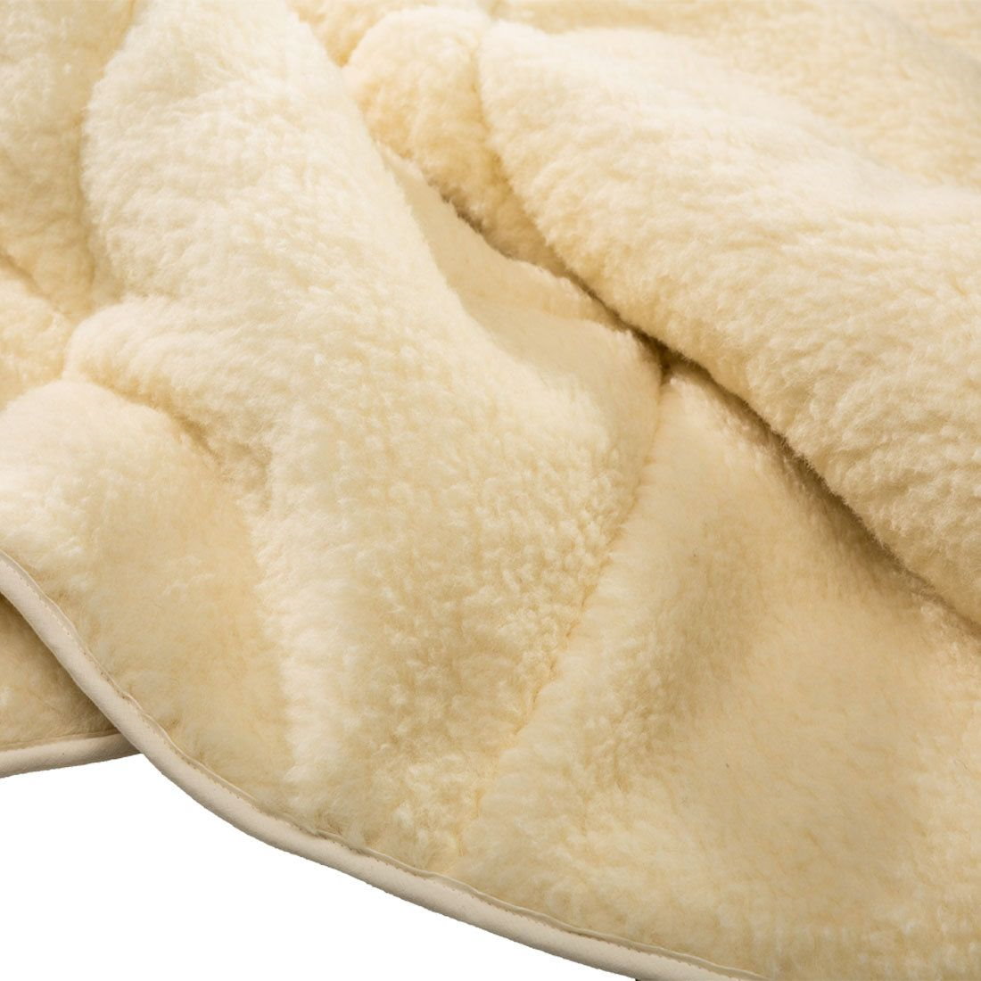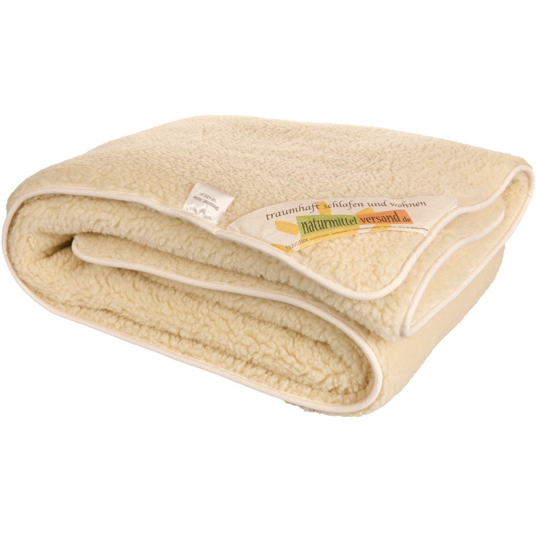 Mit Steppung, beidseitig Lammflor kbT auf Baumwollkette kbA, Füllung Schafwolle kbT, mit Einfassband aus 100% Baumwolle - Konfektion ohne Füllung: