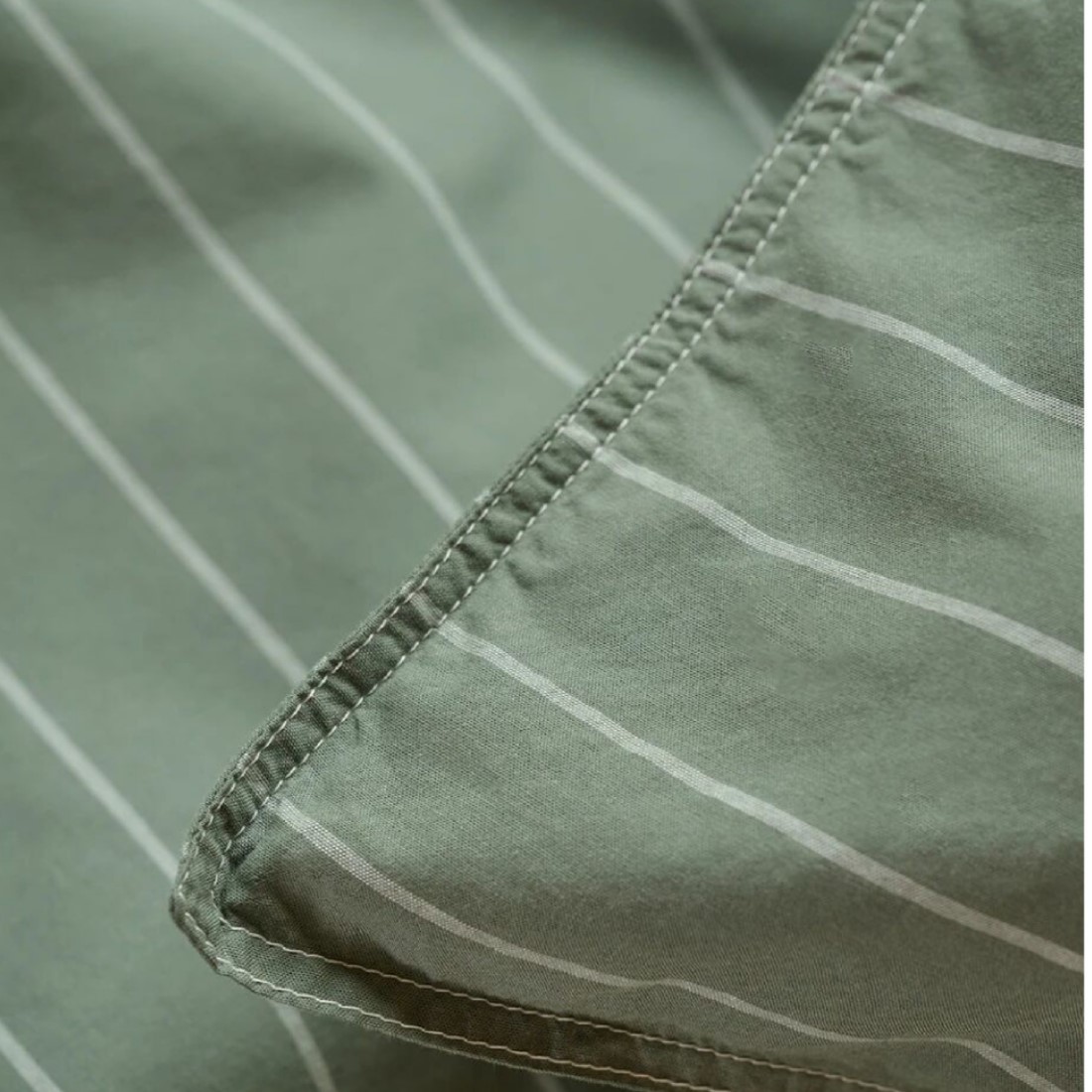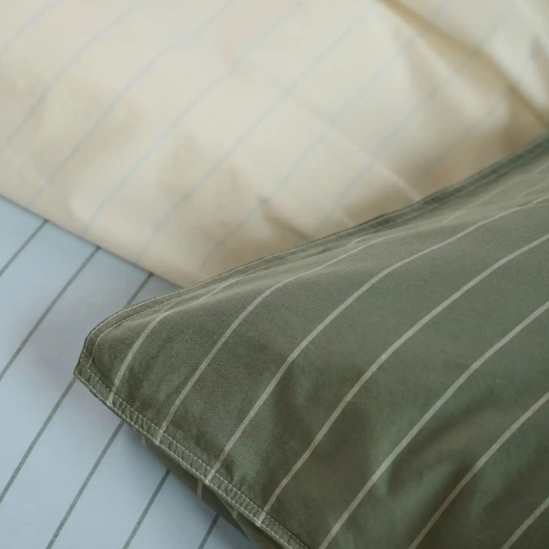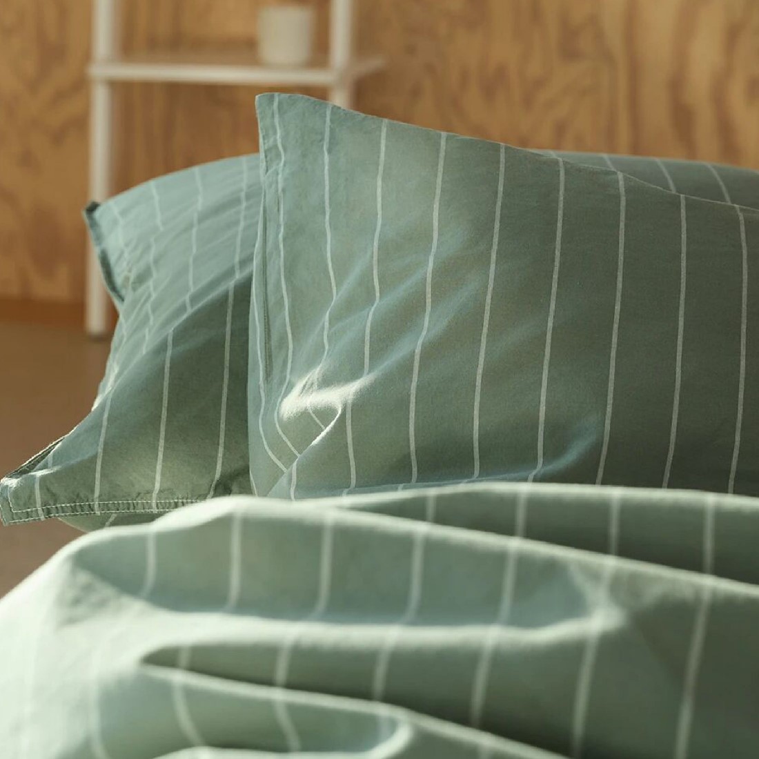Alle Bestandteile der Bettwäsche sind so gewählt, dass sie vollständig in den natürlichen Kreislauf zurückgeführt werden können. Die Herstellung erfolgt ressourcenschonend, sozial fair und mit unbedenklichen Materialien. Duvetbezüge mit Knopfverschluss und Kissenbezüge mit Hotelverschluss sorgen für eine unkomplizierte Handhabung. Die ruhigen Farben und das klare Streifenmuster machen Frida zu einer zeitlosen Ergänzung für jedes Schlafzimmer.