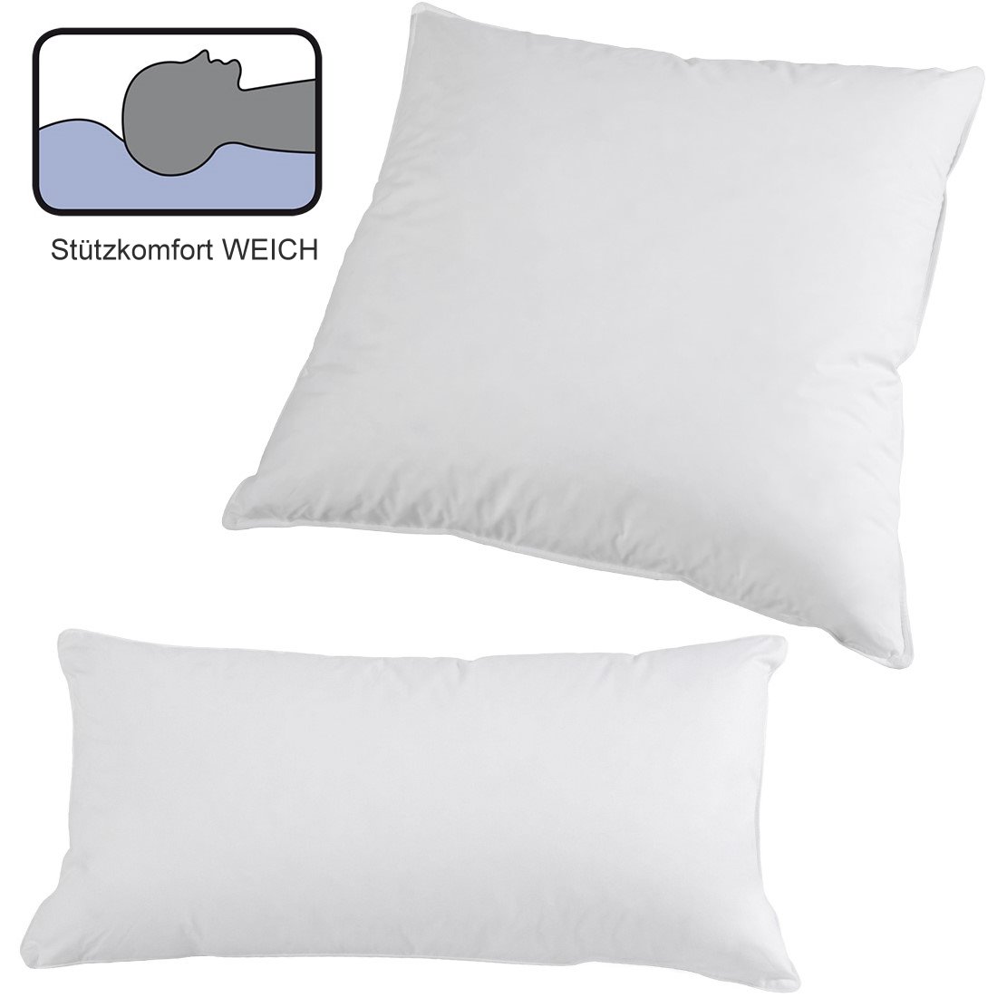 In diesen verschiedenen Stützformaten werden Kopfkissen von Böhmerwald hergestellt: