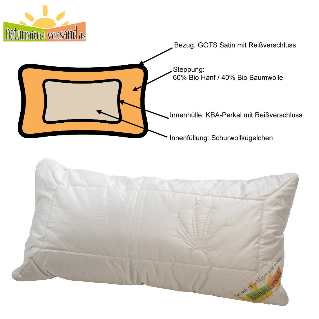 Produktinformationen "Bio Hanf Kopfkissen Indra GOTS"