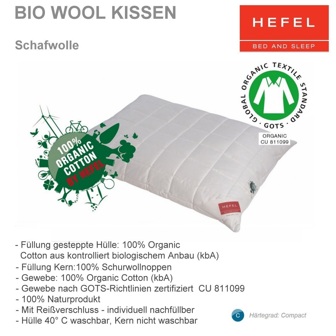 Produktinformationen "HEFEL Bio Wool Kopfkissen Schafwolle"