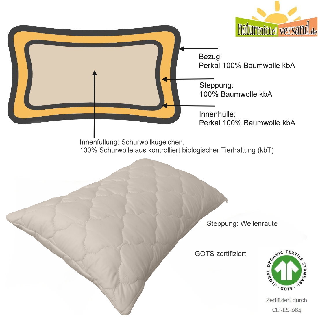 Schafschurwolle Kopfkissen FLOCKE, GOTS zertifiziert