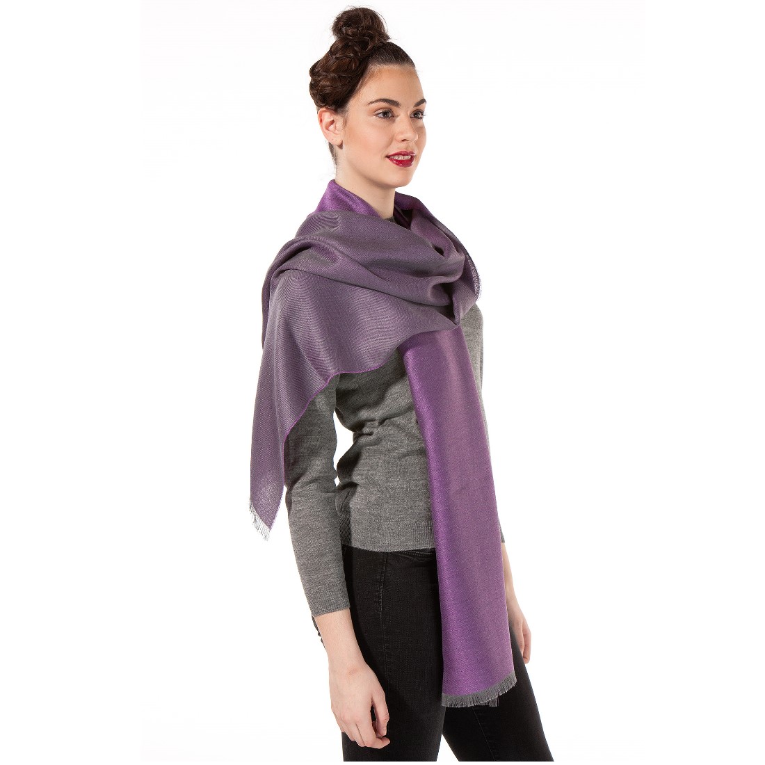 Dieser leichte Webschal besteht nicht nur aus zwei Farben, sondern auch aus zwei verschiedenen Materialien. Eine optimale Verbindung für individuelle Ansprüche! Der DUO Schal wurde kombiniert aus Baby Alapaka und Seide, eine hervorragende Verbindung! Das wärmende Baby Alpaka sorgt für die wohlige Wärme und einen optimalen Wärmeausgleich. Die schimmernde Seide verleiht dem stivollen Webschal noch den ultimativen Glanz. Der Baby Alpaka Seiden Schal DUO kann als Schal oder als Stola getragen werden. Durch die zweifabige Webtechnik, wobei die eine Seite farbig und die andere grau ist, lässt sich dieser Schal individuell an Ihre Farbbedürfnisse anpassen.