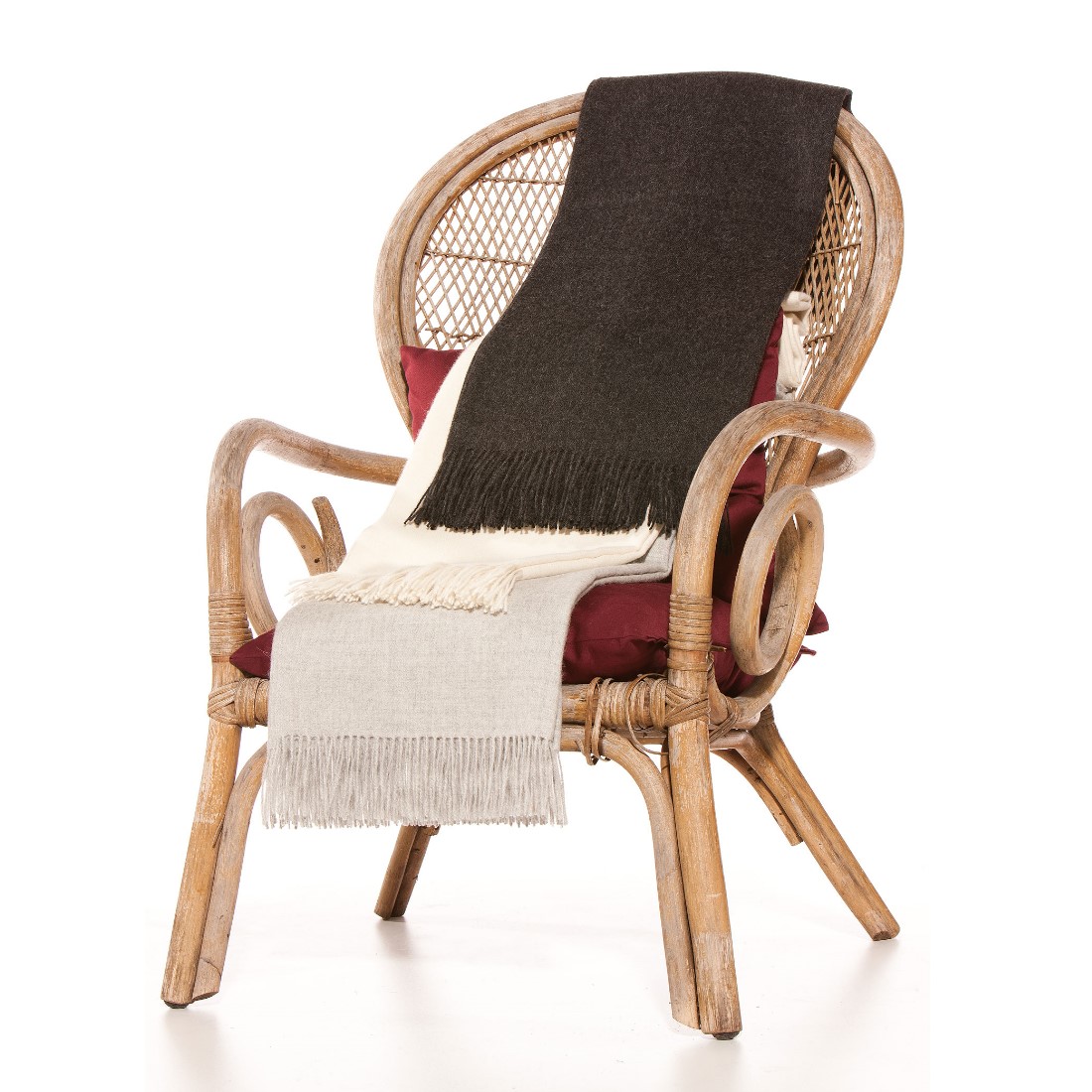 Aus seidig weicher Baby Alpaka Wolle hergestellt ist dieses Alpaka Plaid hautsymphatisch und sehr anschmiegsam. Dieses Plaid kommt mit seinen gerade ca. 500 g als Fliegengewicht daher, ist aber trotzdem wärmend durch gute Thermoeigenschaften.