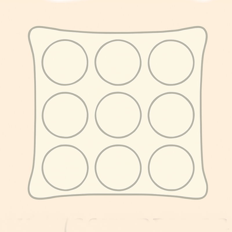 Die Kreissteppung steht für besondere Anschmiegsamkeit und eine elegante Optik. Je nach Hersteller kommen unterschiedlich große Kreise zum Einsatz – von großzügigen Rundungen bis hin zu feinen, eng gesetzten Kreisformen. Diese Steppart sorgt für eine gleichmäßige Fixierung der Füllung und unterstützt die natürliche Anpassungsfähigkeit der Decke an den Körper.
