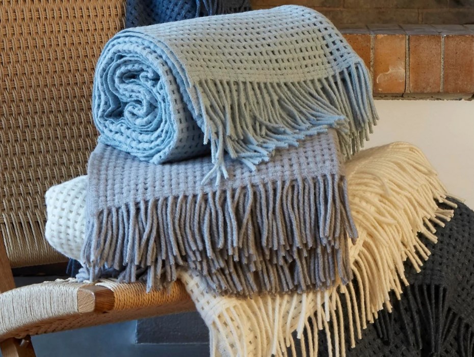 Wohndecken und Plaids aus recycelter Baumwolle, recycelten PET-Flaschen oder recycelten Jeans-Stoffen zeichnen sich durch ein angenehm geringes Gewicht, weiche Oberflächen und sehr gute Klimaeigenschaften aus. Und die hervorragenden Umwelteigenschaften kommen uns allen zugute.
