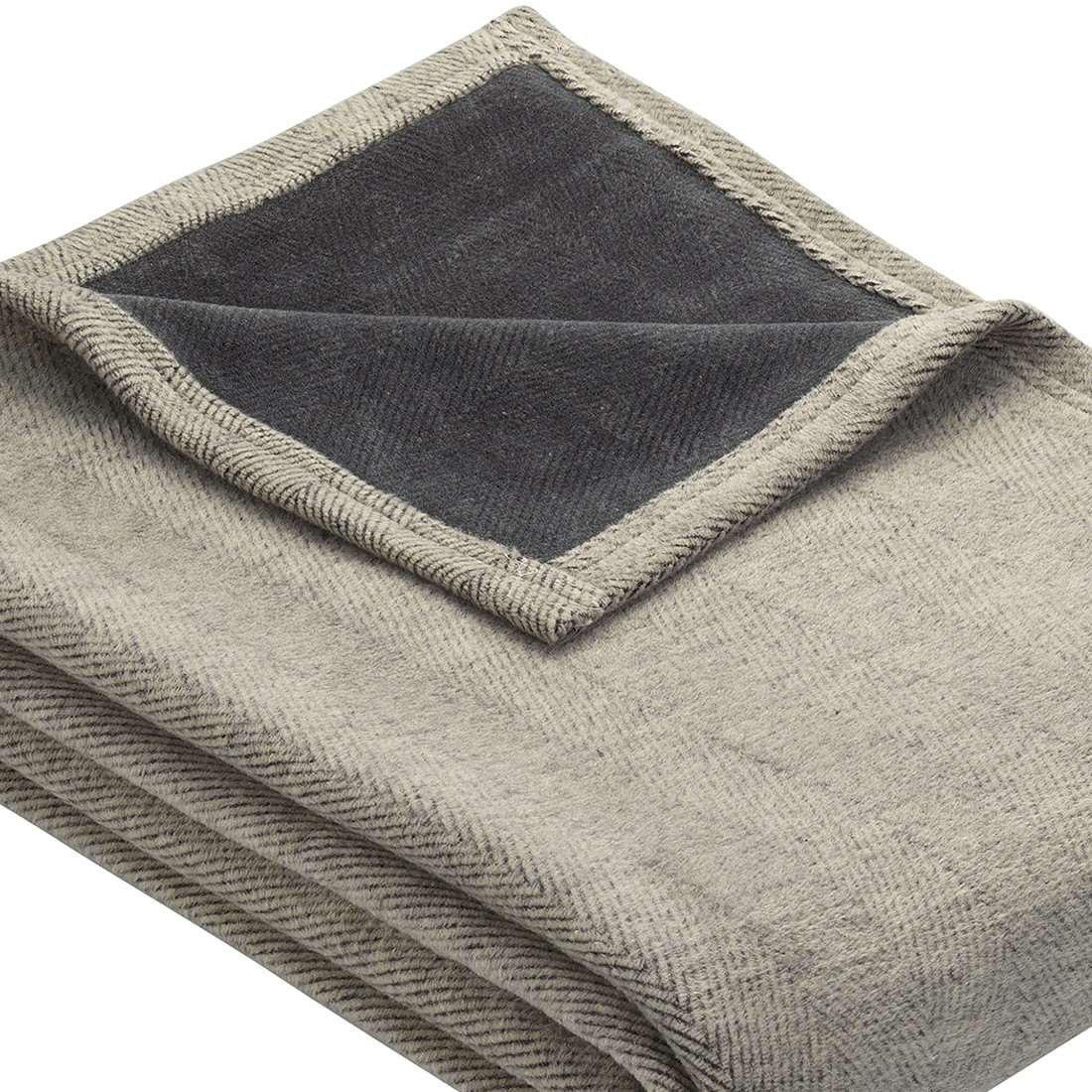 Modern und klassisch geht nicht? Wer sagt denn so etwas? Die IBENA Jacquard Decke Aberdeen beweist, es geht doch. Die Oberseite mit dem filigranen Fischgrätmuster und die andere Seite einfarbig.