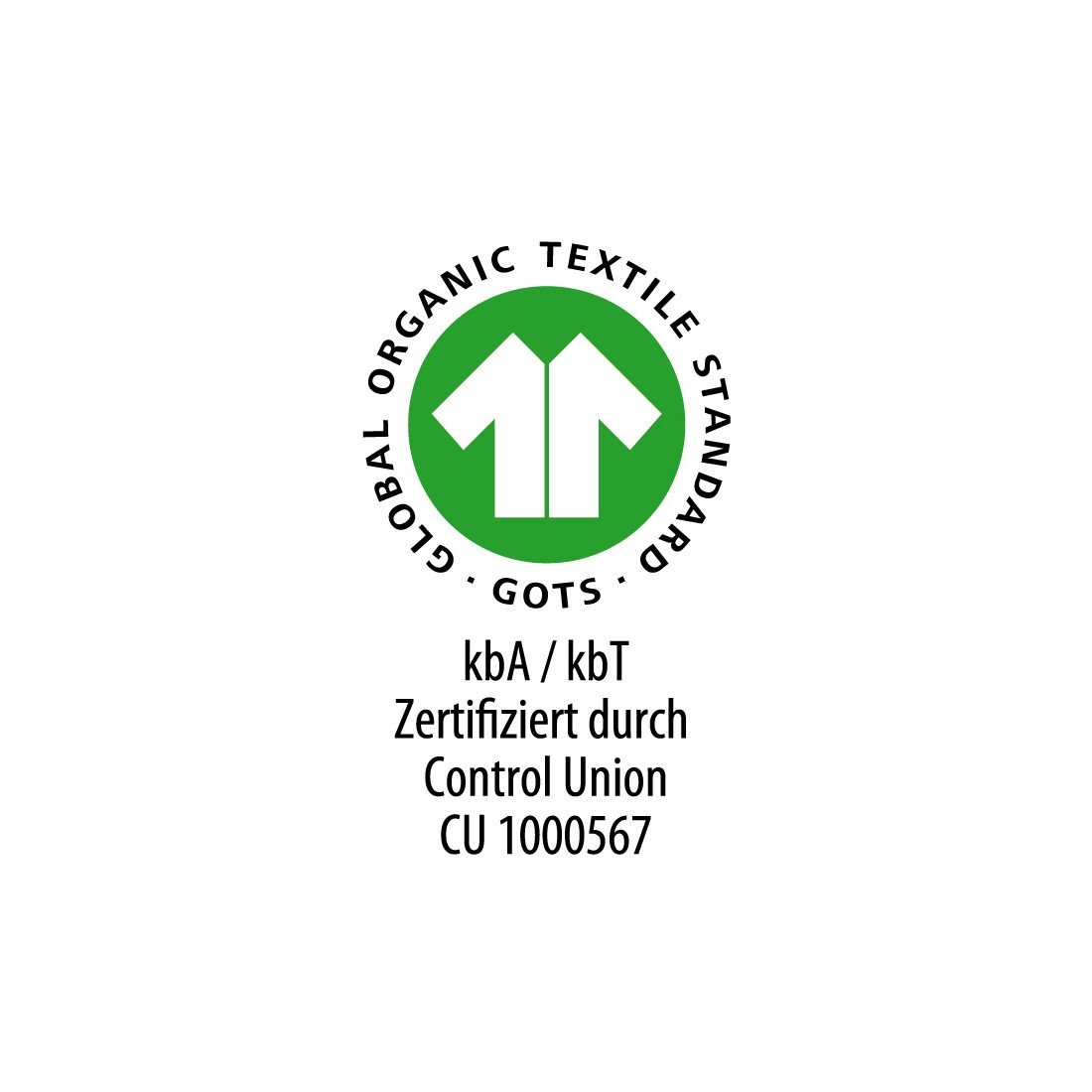- Siegelanzeige: GOTS-kbA, Ökotex Prüfnummer 94.0.9494,
