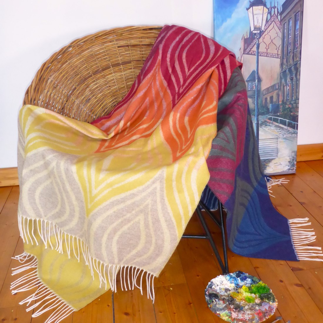 Das Grafik Design dieser hochwertigen Decke im Retrolook entspringt der künstlerischen Inspiration von Annett Moschner. Die langen Fransen runden den Gesamteindruck harmonisch ab. Das Merino Kaschmir Plaid Barcelone ist ein Blickfang in jedem Wohnbereich.