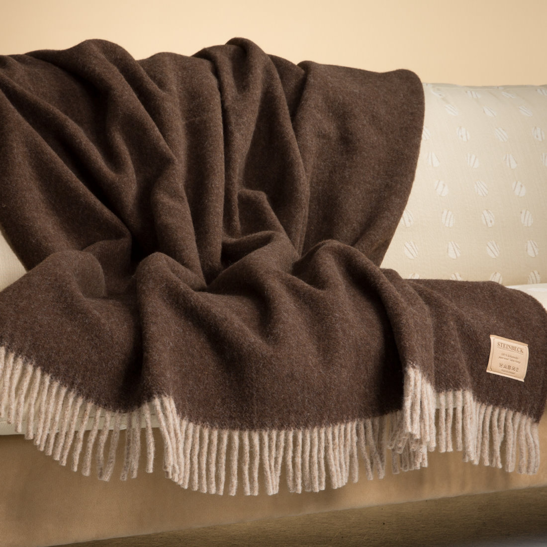 Steinbeck-Produkte zeichnen sich durch eine sehr hohe Qualität und sorgfältige Verarbeitung aus. Bei jedem Arbeitsschritt wird darauf geachtet, die Materialien schonend und bestmöglich zu verarbeiten. Die Schurwoll Wohndecke Wetterstein wird wie andere Decken und Plaids der Firma Steinbeck komplett in Deutschland produziert.