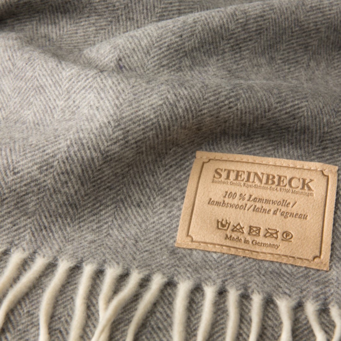Dieses Lammwolle Plaid wird vollstufig von der Fa. Steinbeck in Deutschland hergestellt.