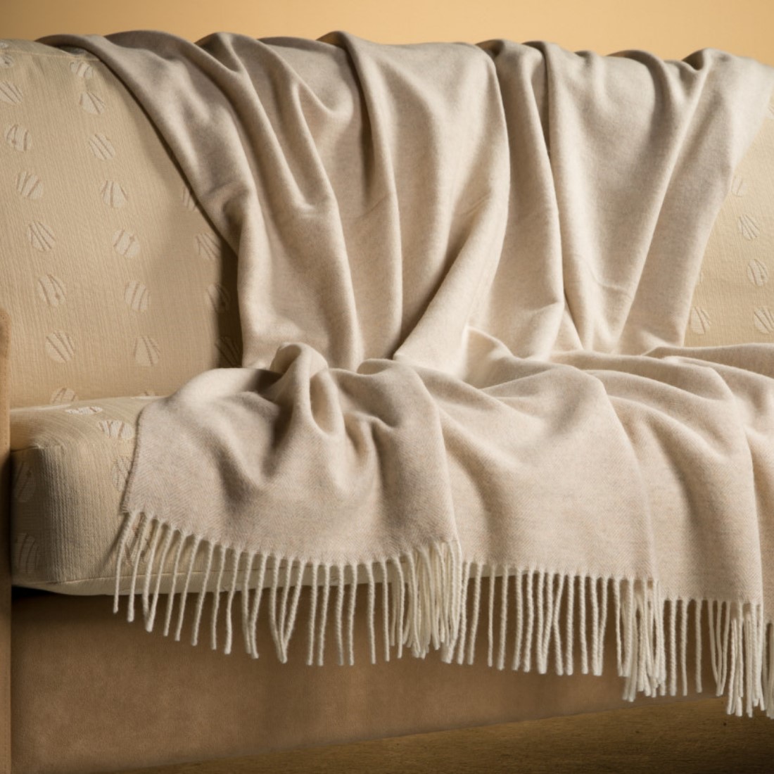 Wunderschönes und kuscheliges Lambswool Plaid von Steinbeck in natürlichen und dekorativen Farbtönen