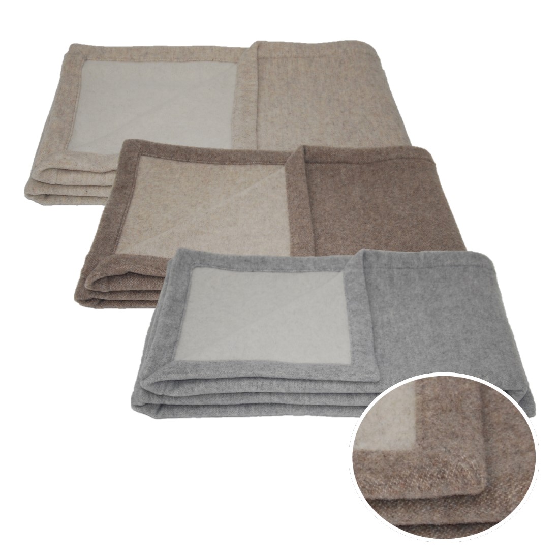 - Konfektion: Doubleface Lambswool Veloursdecke mit Kuvertsaum