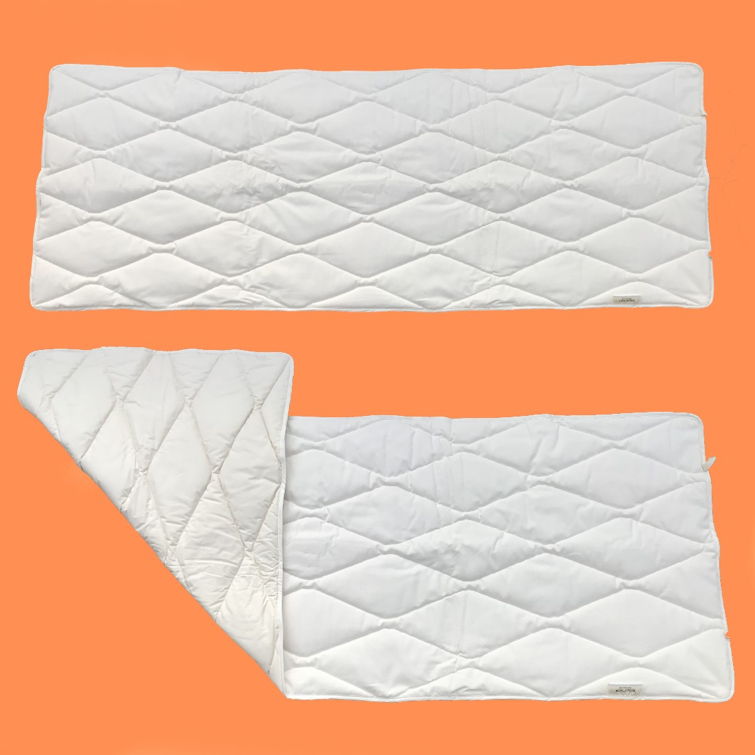 Die Oberfläche der Oberseite besteht aus 100 Baumwolle aus kontrolliert biologischem Anbau (kbA) und ist versteppt mit der Unterseite aus ebenfalls 100% Baumwolle aus kontrolliert biologischem Anbau (kbA).