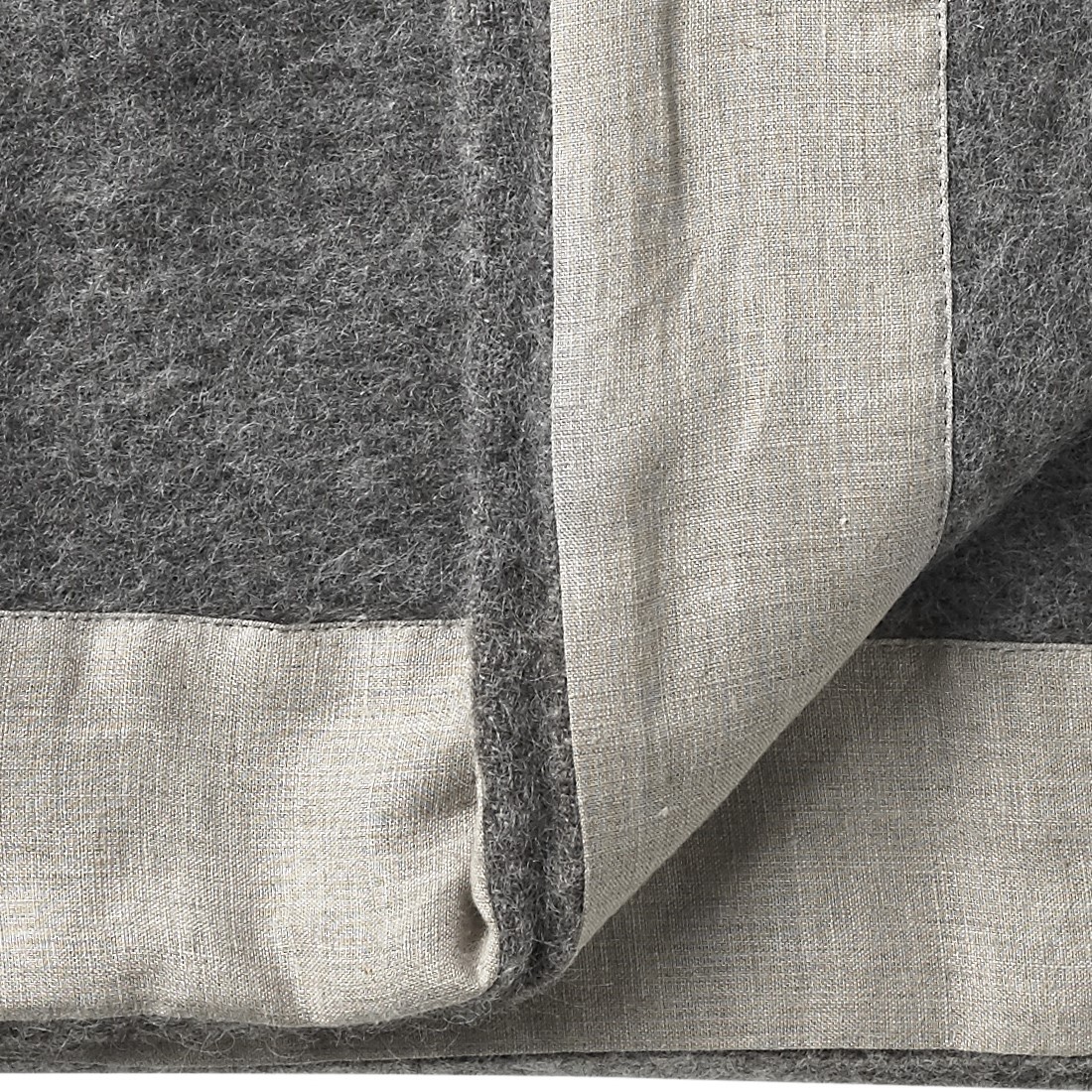 Schurwolle des Gotlandschafes ist die Grundlage dieser in typisch skandinavischer Qualität und im nordischen Look gewebten Wolldecke. Ein besonders optisches Highlight ist die einseitige Einfassung aus Naturleinen.